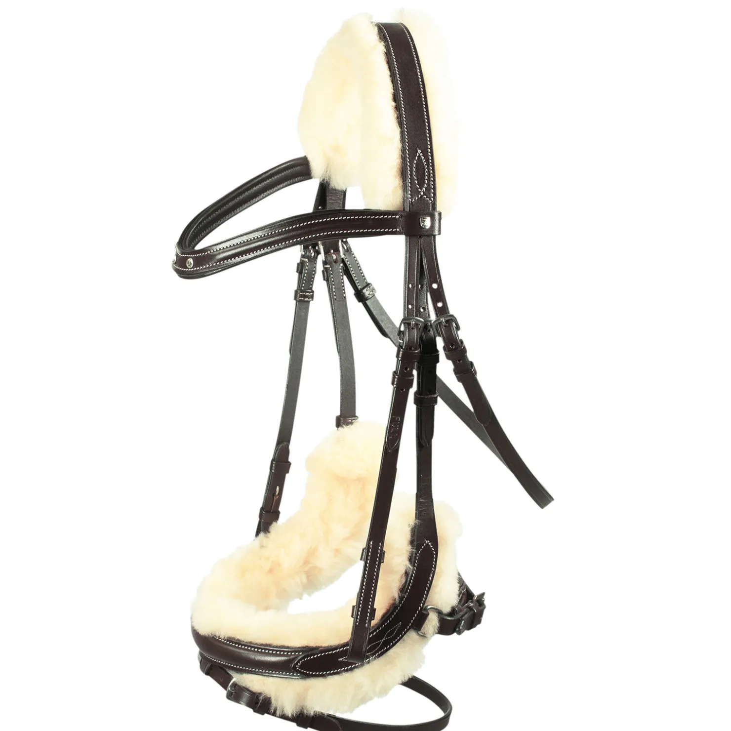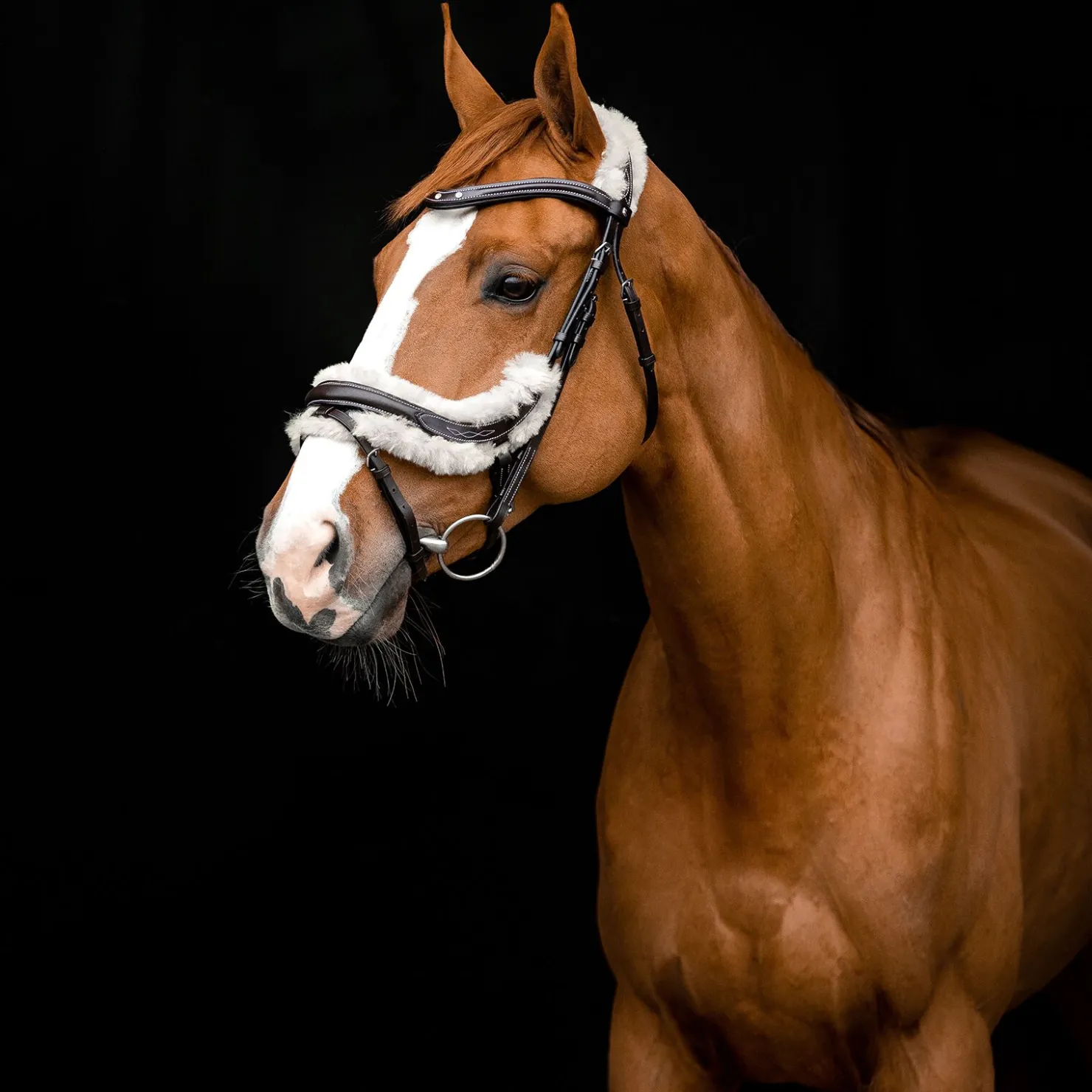 Det anatomisk formede nakkestykke er utviklet for komforten til din hest og gir ekstra glans på utstyret med små, glitrende krystaller. Dette hodelaget kommer med to avtakbare innsider i fuskepels og supermykt lær, begge er ekstremt enkle å bytte med borrelåsfester. Fuskepelsen vil føles superbehagelig mot hestens nese. Dette hodelaget har også flash-nesereim med pull-back.