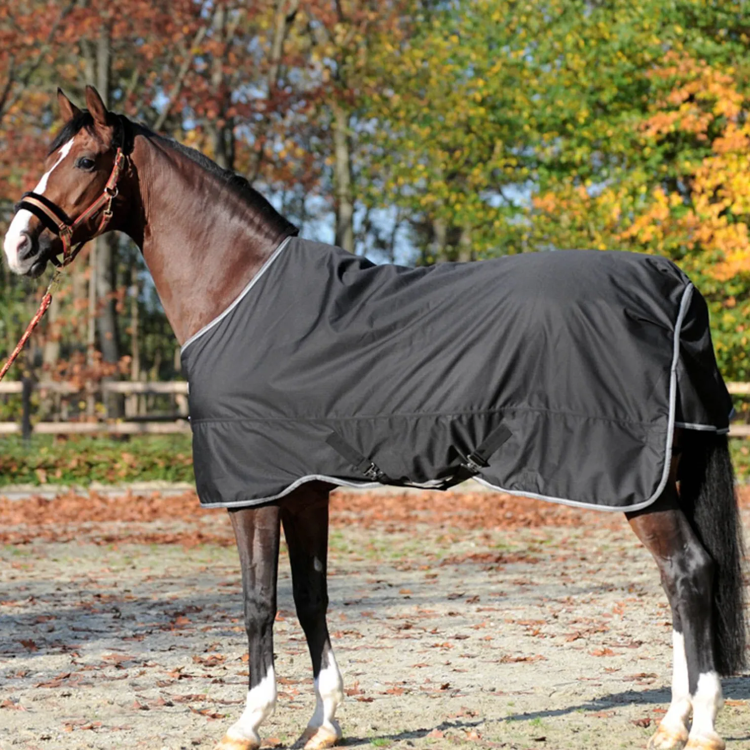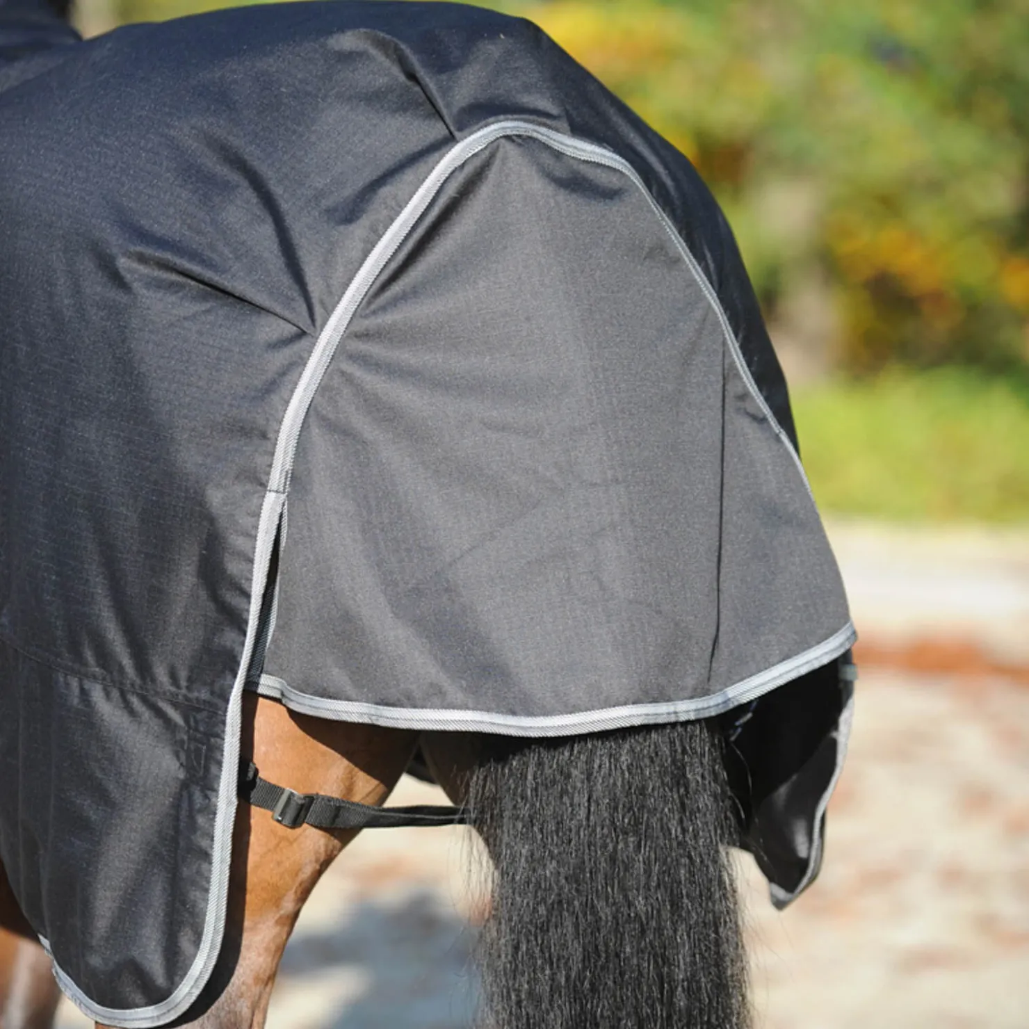 Dette nye utedekkenet gir hesten mye bevegelsesfrihet og komfort både høst og vinter.Det er laget av pustende, vanntett (3000 mm vannsøyle), og slitesterkt (600 denier ripstop) materiale.Uten ryggsøm.Dobbel borrelåslukking foran på brystet, elastiske innlegg på kryssgjordene, dyp halesnor og haleflapp.50 gram fyll.