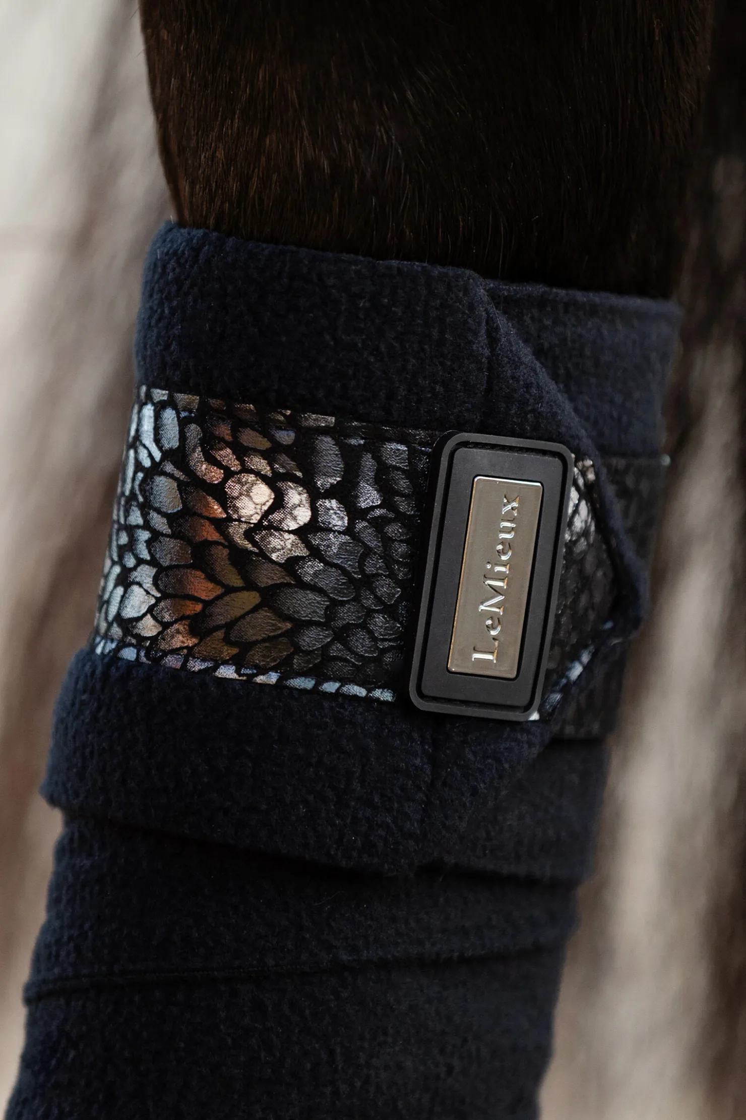 - Metallisk endedetaljflik med matchende metallisk trykk og merke Kan brukes alene eller med LeMieux under-bandasjeputer for ekstra beskyttelse