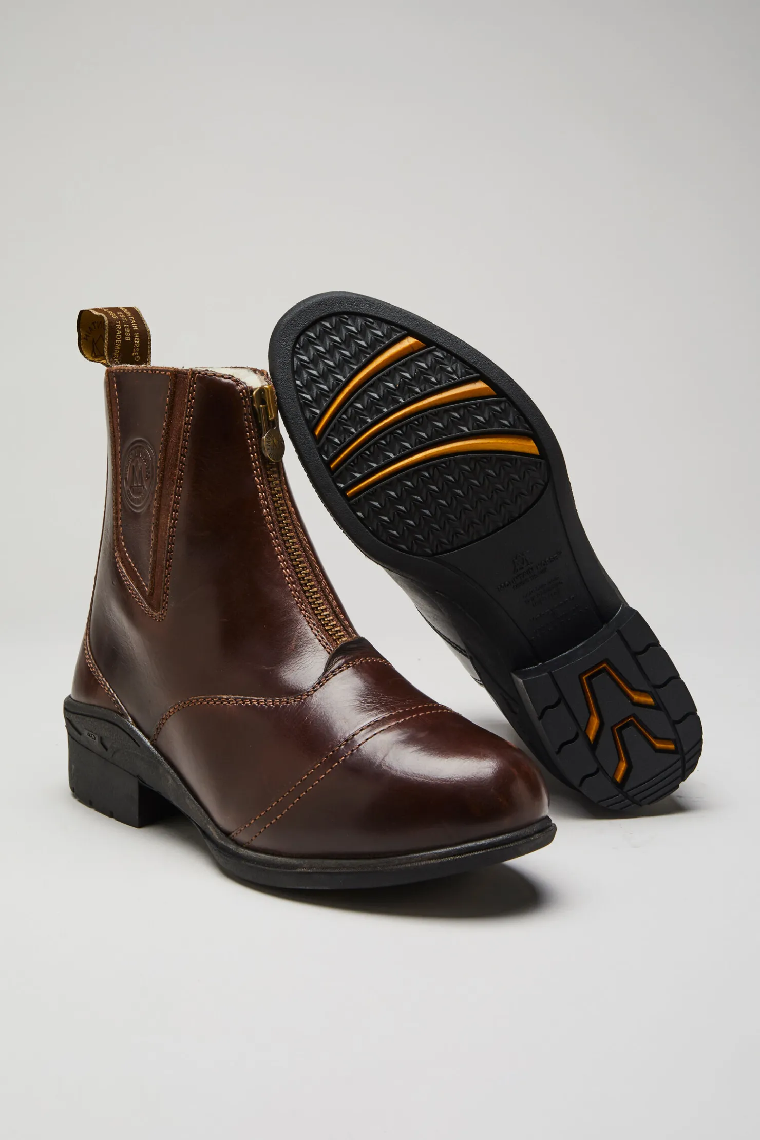 - Klassiske stallsko laget i mykt fullnarvet lær en elastisk YKK-glidelås foran