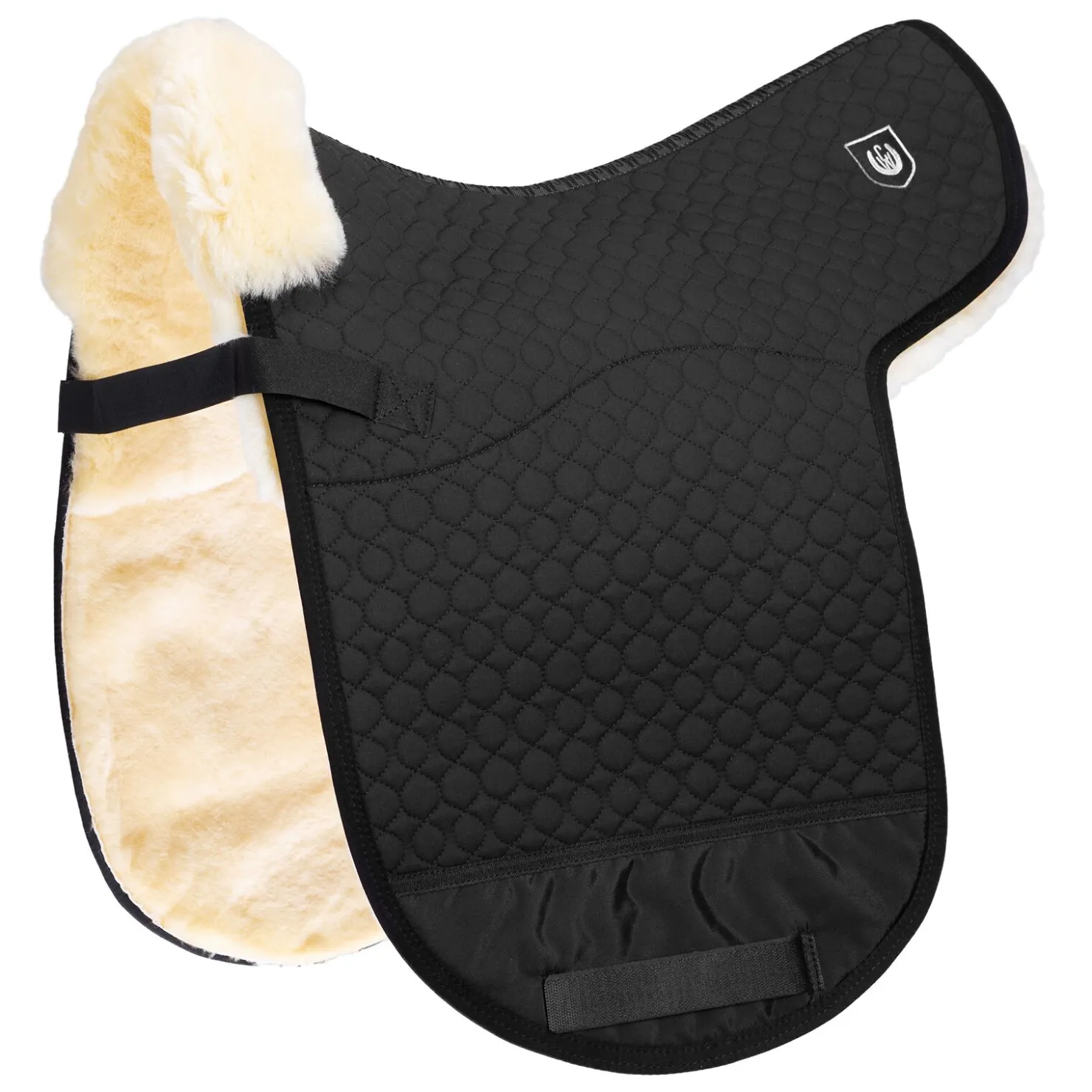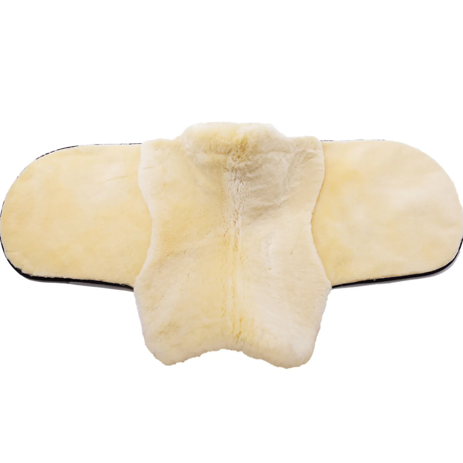 D-Dressur. Hele undersiden består av saueskinn, med 2 forskjellige ullhøyder. Setet har en ullhøyde på ca. 30mm, mens sidene har ca. 15mm, for å gi best mulig kontakt mellom hest og rytter. Holdes på plass under salen ved å tre gjorden gjennom stroppene nederst på salkappen. Borrelåsfeste. Nylonbelegget hindrer gnisning som ofte forårsakes av salgjorden. Foran er sauefellen trukket opp på oversiden som en kant, noe som letter plasseringen av salen. Kan vaskes i maskin med spesielt vaskemiddel for sauefell. Tåler også tromling. Vi anbefaler vårt vaskemiddel «C7». Vennligst respekter våre vaskeanvisninger.
