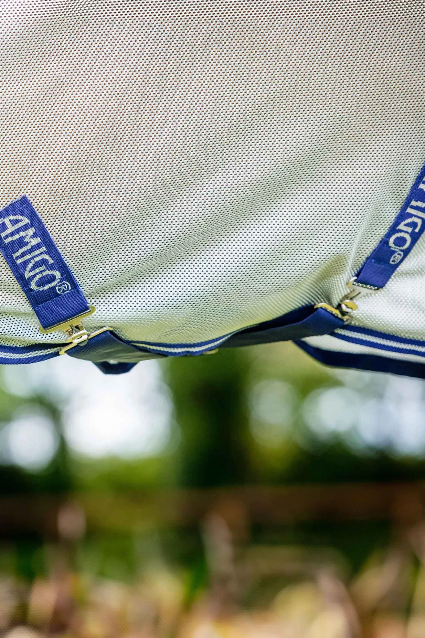 En overside i blanding av bomull og polyester bidrar til å avlede solens skadelige stråler og sommerregnet, samtidig som du beskytter hesten mot insekter. Sidepaneler i polyesternetting reduserer vekten og gir økt lufting slik at hesten holder seg kjølig på varme dager.