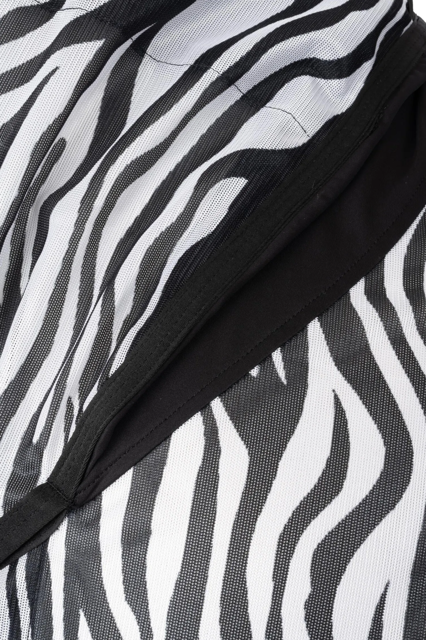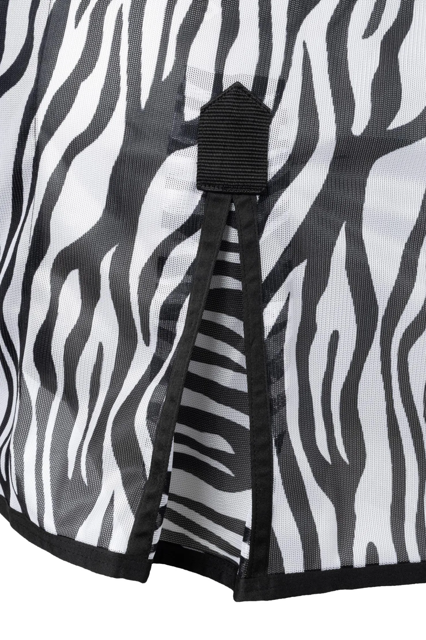 Expertly designed to give your horse day-long summer turnout protection, the Horze Defender fly rug is UV-protective and features a superb zebra print design which offers head to tail protection from annoying and biting insects. Zebra stripes are a highly effective deterrent against flies as the contrasting stripes have been shown to confuse and deter insects, helping to reduce bites and irritation.Made from a fully breathable fabric to ensure your horse stays cool and comfortable, it is also quick to dry, should your horse get caught in a shower. With a Elastan insert at the base of the neck for added stretch and comfort, the Defender fly rug also features a smooth lining along the extra-long neck and shoulder areas, to help prevent friction and ensure your horse is comfortable and protected, all summer long.