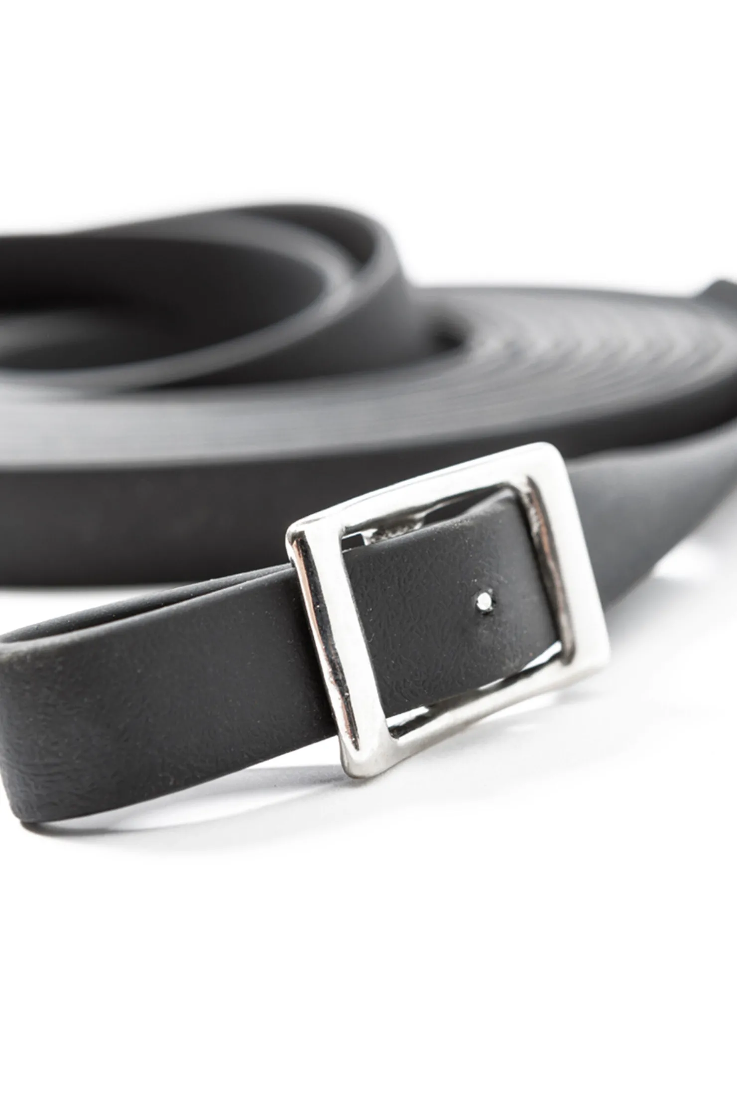 For the classic dressage work from the floor this long reins are ideal. Biothane is a lightweight material made from a structural fabric with a plastic coating. Very easy to care for, does not absorb moisture from the outside and is mold-resistant. Biothane is absolutely tear-proof, antibacterial and UV-resistant.