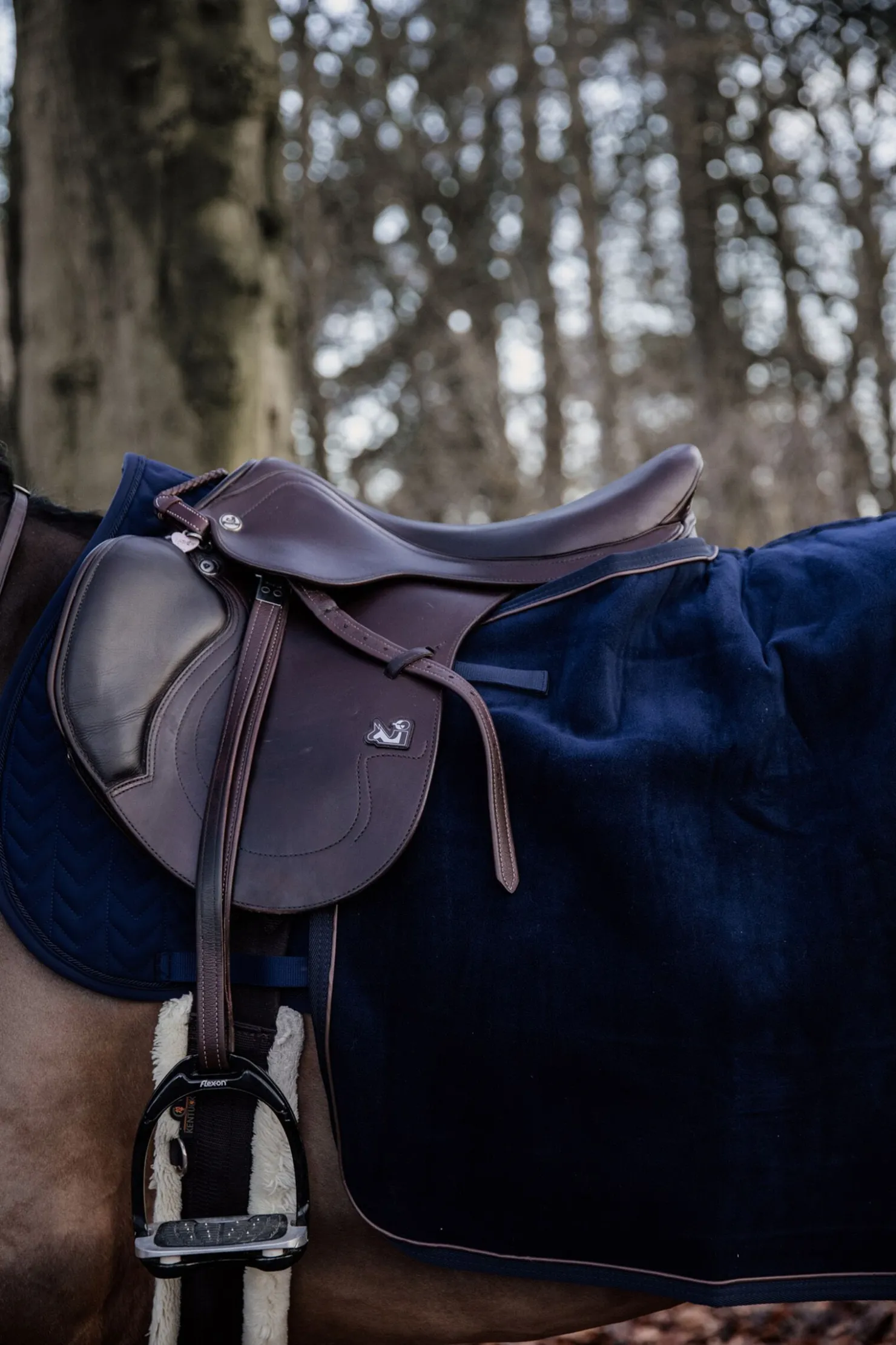 Quarter Rug Heavy Fleece ridedekken er laget i samme stoff som det populære Heavy fleecedekkenet.Det har det samme utseendet og følelsen som et ulldekken, uten ulempene dette stoffet kan føre med seg.Mens du varmer opp vil Quarter Rug Heavy Fleece holde hesten din varm.Når du skritter av lar dekkenet svetten fordampe, slik at hesten din tørker raskt.Quarter Rug Heavy Fleece ridedekken kommer med to borrelåsfester for feste i salen, og halesnor.Kentucky-logoen i brunt, kunstig lær gir dekkenet et svært stilig utseende.