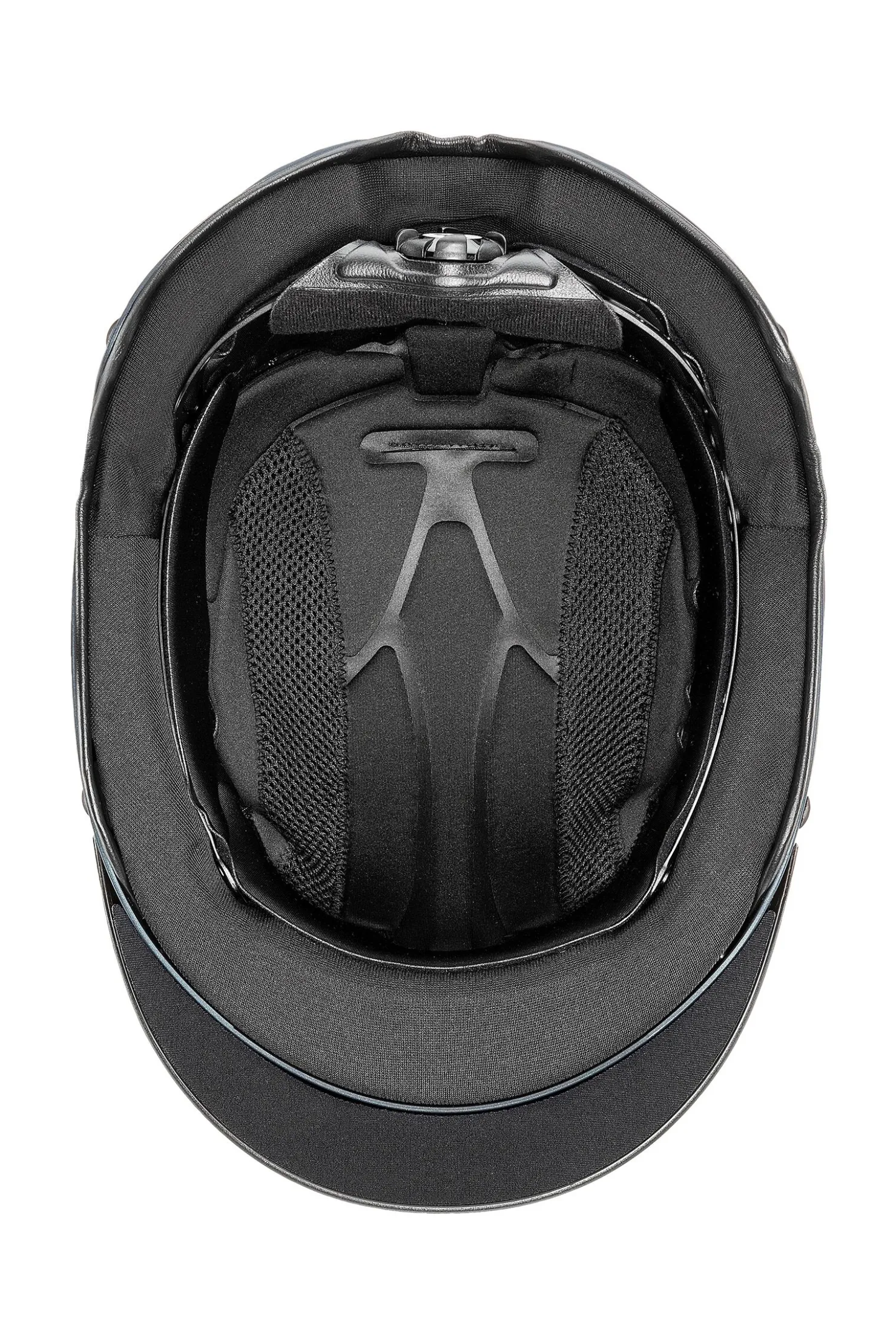 Førsteklasses stil møter utmerket ytelse.Uvex Perfexxion II Grace er en nødvendighet for alle kvinnelige ryttere som synes underdrivelse er kjedelig.Dette kommer av de 38 originale Swarovski®-krystallene innlagt for hånd, som i kombinasjon med kromdekte ventilasjonsåpninger, elegant webdekking og kant i uekte lær gjør hjelmen til et eksklusivt blikkfang.For ekstra beskyttelse har uvex perfexxion II Grace en low cut bak på hodet.Det dynamiske pentagon ventilasjonssystemet gir optimal luftsirkulasjon og garanterer perfekt klima i hjelmen til enhver tid.Det praktiske hestehale-formen og den svært myke og pustende microsense-innsiden gjør komfortpakken komplett.