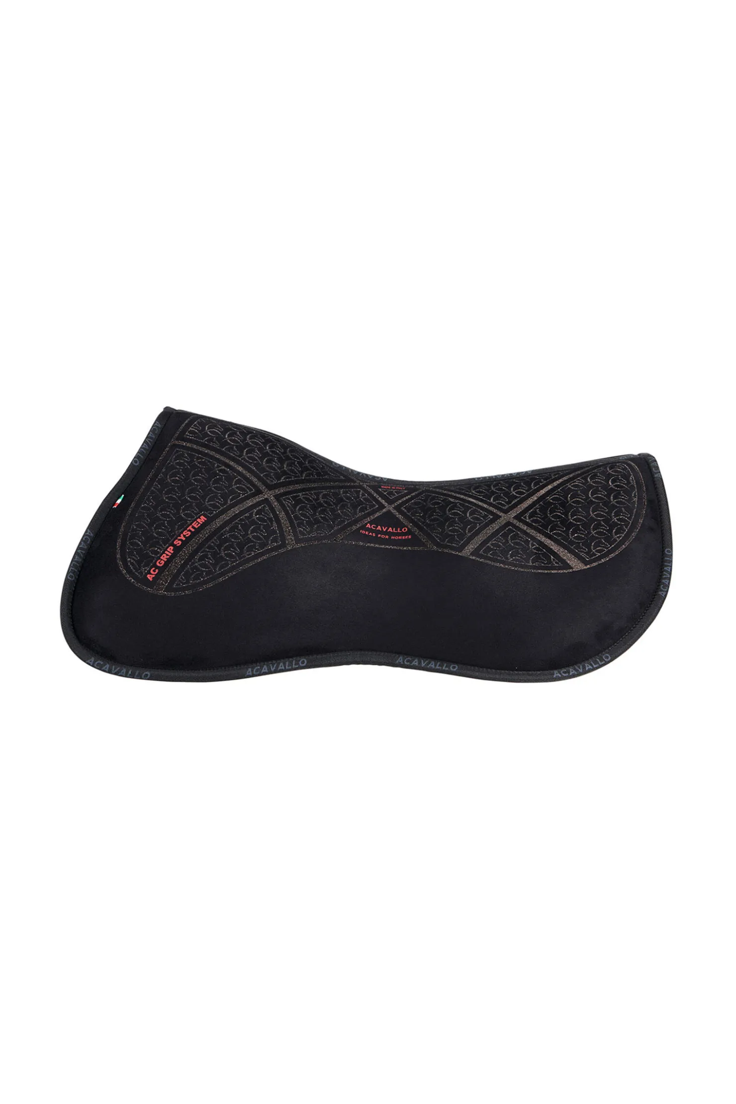 Halvpad i memory foam laget med det nye Acavallo Grip System.Acavallo Grip System består av spesielle deler med svært gripebestandig materialer som gir en perfekt stabilitet til salen.Helt pustende, maskinvaskes på lav temperatur.Memory foam absorberer støt, gnag og friksjon blir det ikke, og trykk fordeles jevnt.