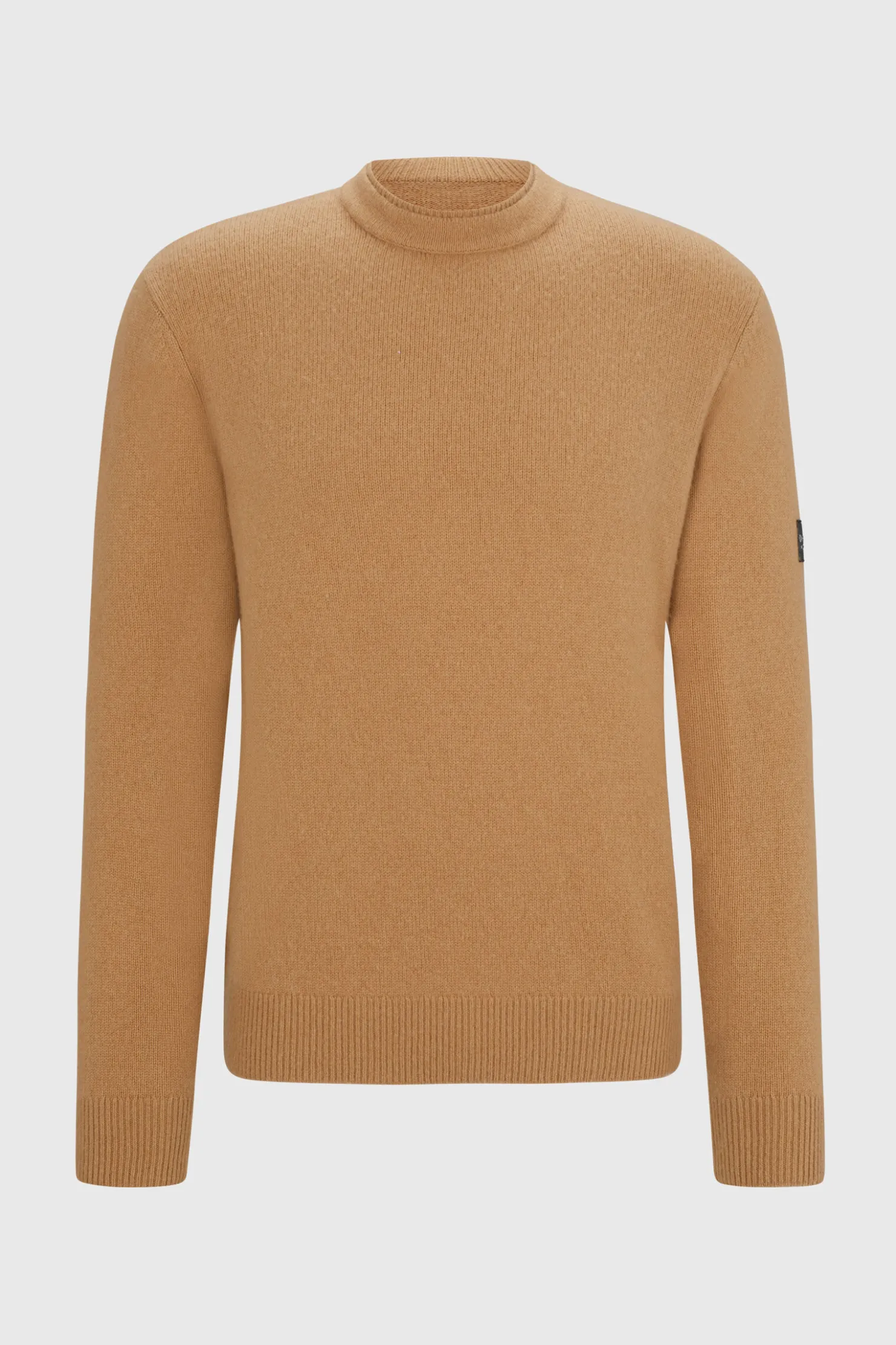 Luxury wool cashmere jumper with hairy knitted structure, double layer extra worked neck, normal lengths and comfort fitting.