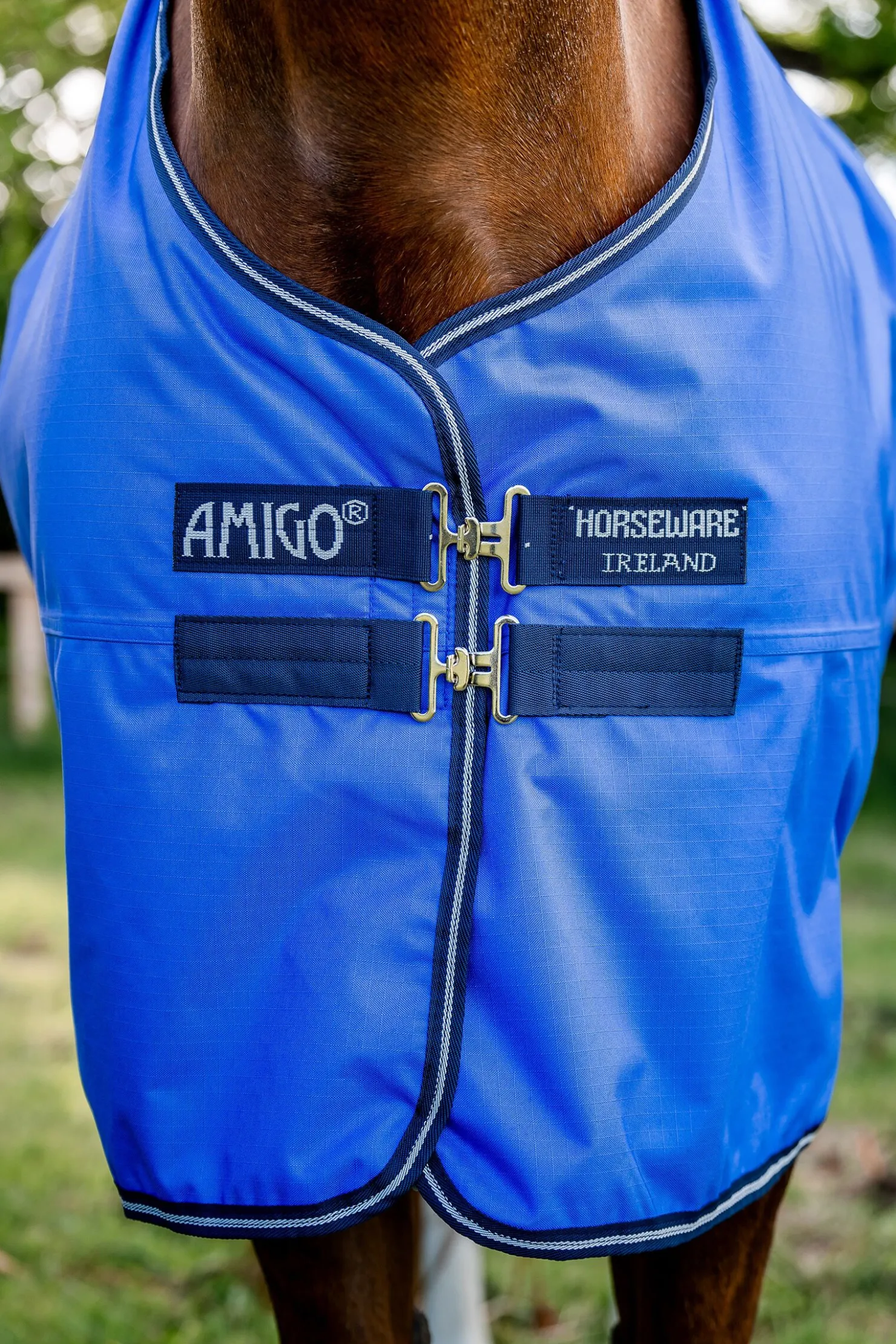 Amigo® Hero Ripstop beitedekken er laget av 600D polyester ripstop-materiale og er pålitelig vanntett og pustende. Dette rimelige beitedekken kombinerer komfort, bevegelsesfrihet og ytelse i et vakkert design.Som en ekstra funksjon har den et skinnende polyesterfôr som tar vare på hestens hud og pels mens den bruker det. Dekkenet tilbyr en komfortabel og sikker passform og er utstyrt med en rett frontlukking, utskjæringer for forbena og kryssede bukstropper. På denne måten kan både hesten din og du nyte tiden på beite med vissheten om at dette dekkenet ikke vil svikte dere.Takket være halsløkker er dekkenet kompatibelt med halsdekken fra Amigo®-serien, noe som gir enda mer fleksibel bruk; det har også en halerem. Alle disse funksjonene gjør dekkenet til et av de uunnværlige grunnplaggene i hestens garderobe, som vil bli brukt om og om igjen.