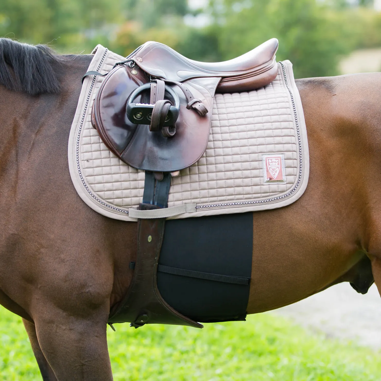 En komfortabel beskyttelse i lycra polyester som festes rundt magen til hesten, og beskytter og forebygger mot skader og irritasjoner fra sporene. Det myke stoffet gnager ikke, og gir ekstra beskyttelse når man hopper eller rir på tur. Borrelås og en enkel plastklips gjør den enkel å feste. Svart, elastisk materiale som beveger seg enkelt og komfortabelt med hesten.