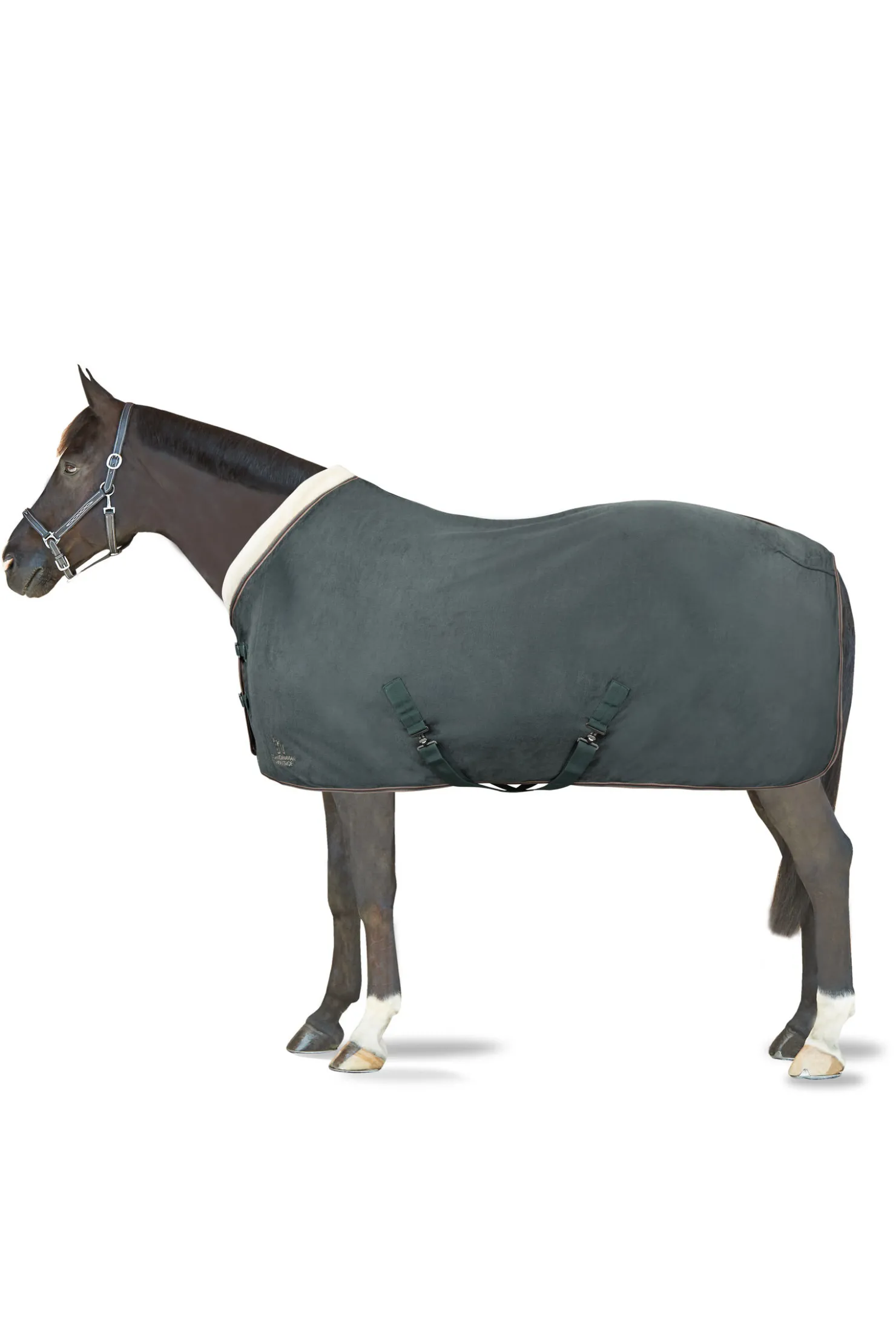 Horze Leighton svettedekken er laget av myk fleece med en behagelig fuskepels på kragen.Dobbel frontlukking, kryssgjorder og halesnor holder dekkenet på plass.Trykket kant langs ryggraden ser sporty ut, og brodering på siden lager et skandinavisk inntrykk.Kombiner dette dekkenet med resten av Horze Leighton Teens Collection for et matchende sett!