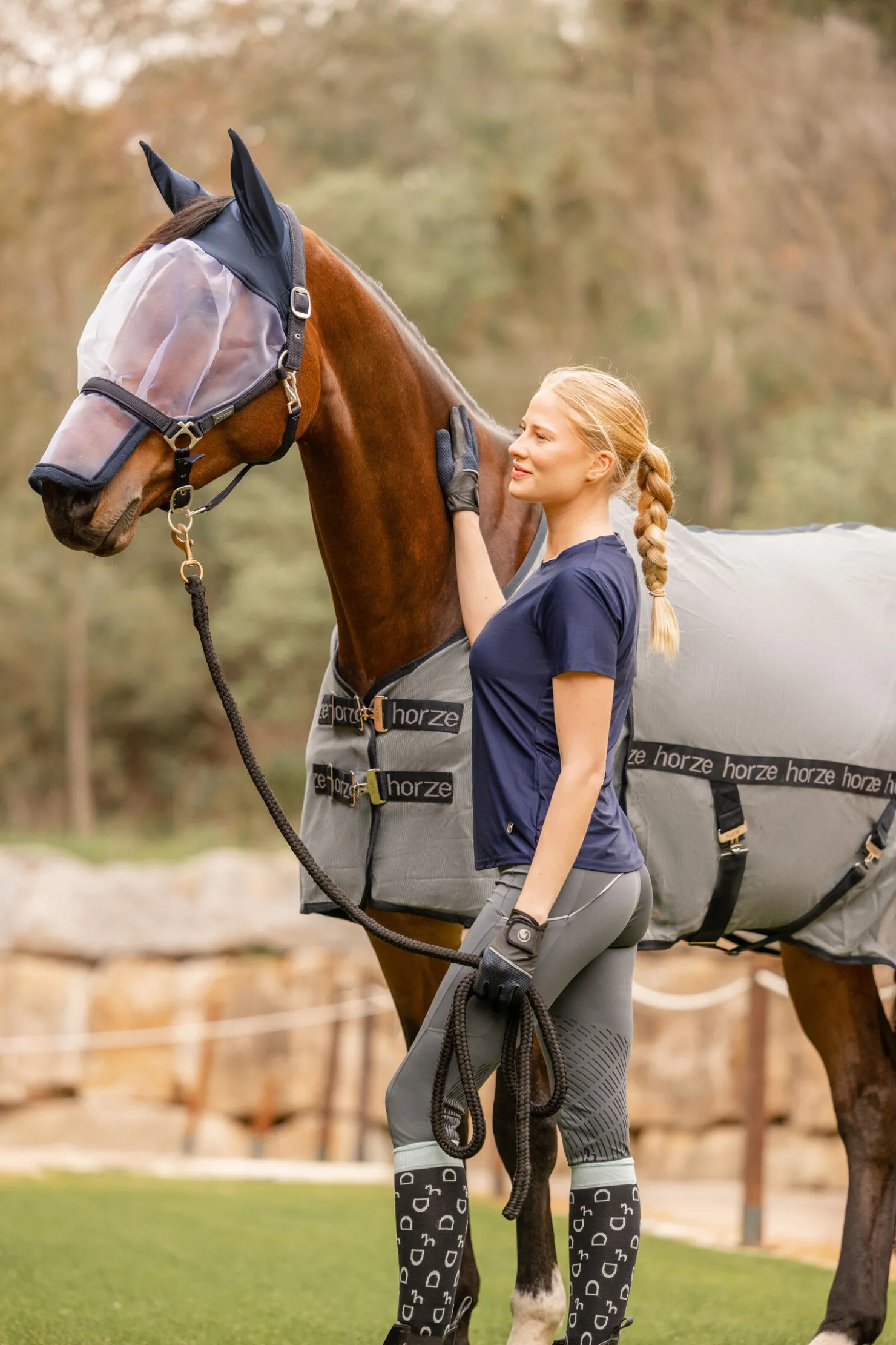 Paso Fino fluedekken er det perfekte valget hvis du vil ha et stilig, og samtidig svært funksjonelt fluedekken med UV-beskyttelse.Mesh-stoffet er pustende, og de lyse fargene forhindrer hesten fra å bli overopphetet.Myk neopren på manken og glatt fôr langs bryst og nakke forhindrer gnag.Bogsplitter øker friheten under bevegelse eller gressing.Frontlukkingen med T-spenner og kryssgjordene er begge justerbare for å sikre en perfekt passform.En stor haleflapp gir optimal beskyttelse og sikres med halesnor.Denne stilen toppes med logobånd langs siden – et skikkelig blikkfang.