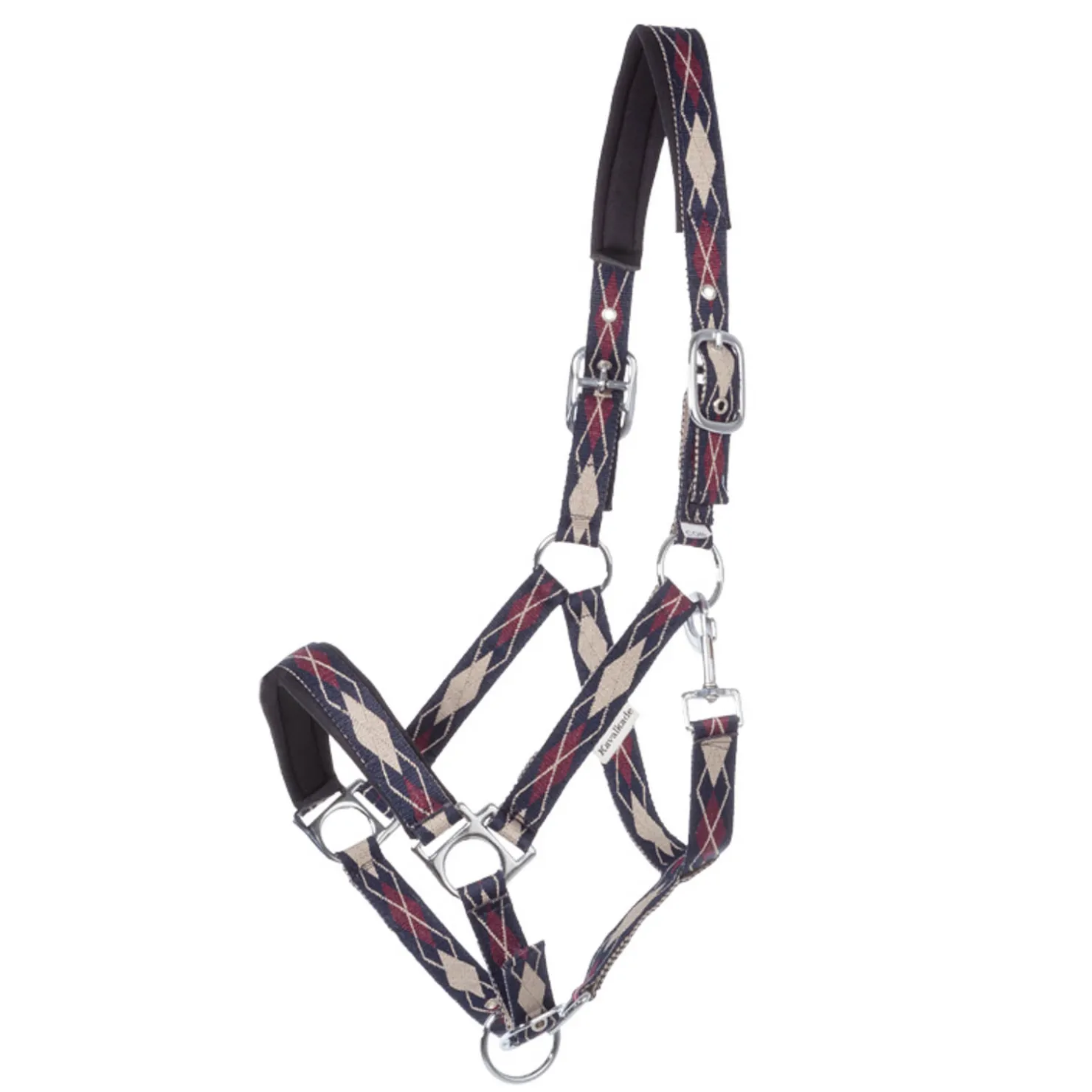 Grimen «Classic Raute» kommer med et moderne sjakkmønster og er et supert blikkfang på alle hester.Nakken og nesen er mykt polstret.Grimen kan justeres på begge sider, og under for en perfekt passform.Spennene er i sølv.