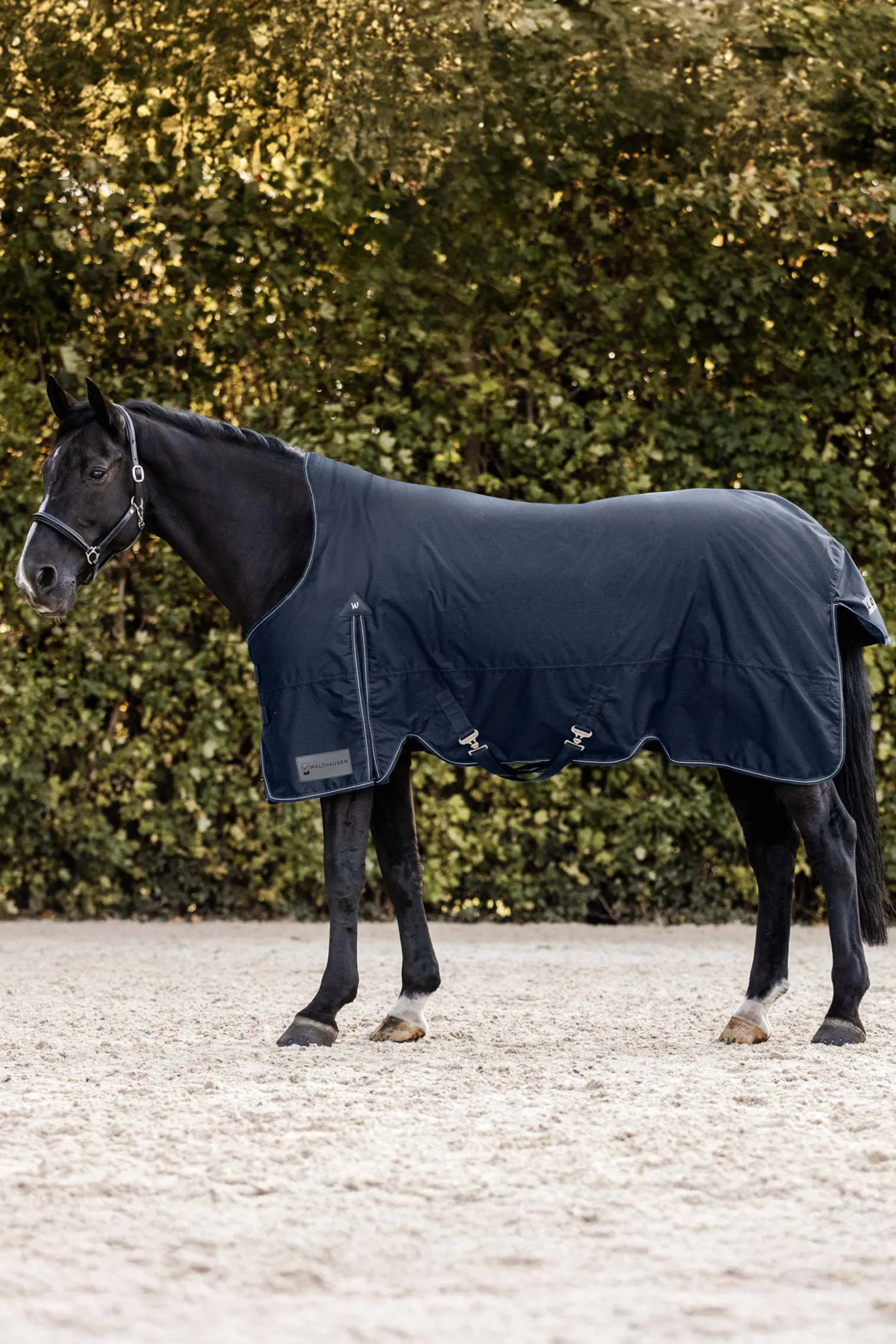 Med Waldhausen Arctic utedekken kan du være trygg på at hesten din er optimalt beskyttet, selv under utfordrende forhold. Det antibakterielle innerforet sikrer maksimal komfort. De doble T-frontlukningene gir en sikker passform og forhindrer at dekkenet sklir. Kantbåndet med reflekterende detaljer forbedrer synligheten i dårlig lys. Den generøse bevegelsesfolden gir ubegrenset bevegelsesfrihet, mens kryssgjordene gir ekstra stabilitet. Yttermaterialet på 600 denier gir en slitesterk barriere mot vind og vær. Arctic utedekken med høy hals forhindrer gnagsår på manken og mankekammen. Stay Clean Inlay: Si farvel til hestehår på dekken som kun er prøvd én gang. Waldhausen Stay Clean Inlay er en praktisk og innovativ løsning for å prøve dekken på hester hygienisk og enkelt, uten at de blir skitne eller fulle av hår. Innlegget er direkte integrert i de nye Waldhausen utedekkene og er festet til innsiden av dekkenet. Dette forhindrer direkte kontakt mellom hestens rygg og dekkenet. Resultatet er at dekkenet forblir rent, selv om det bare brukes én gang til prøving. Det er viktig å merke seg at innlegget ikke er beregnet for permanent bruk, men kun til kortvarig prøving. Stay Clean Inlay kan enkelt fjernes ved forsiktig å dra det av.