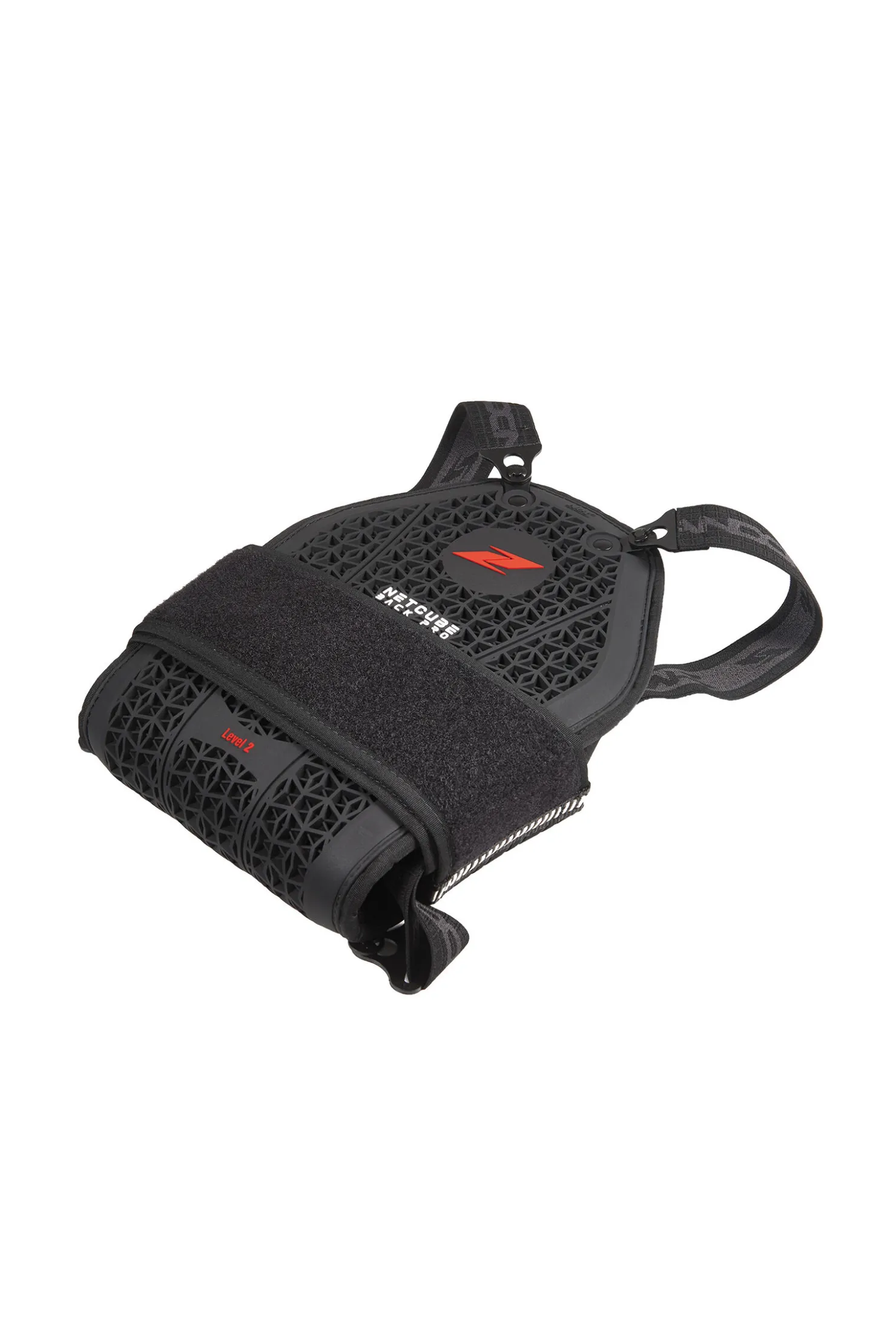 NetCube Back Pro er en Level 2 CE-sertifisert ryggbeskytter (EN 1621-2) som kommer med den eksklusive Net3-teknologien. En innovativ struktur laget av nitrilgummi med patentert 3D-nettingsteknologi. Dette er et resultat av nøye studier som har gjort at Zandona har oppnådd en førsteklasses kombinasjon av form og materialsammensetning med høy ytelse. Sammen garanterer disse en betydelig støtabsorbering, og sikrer derfor maksimal beskyttelse.Den har en eksepsjonell passform og unik komfort som følger kroppens bevegelser helt perfekt.NetCube Back Pro er kun 20 mm tykk, veier kun 650 gram (x7-versjonen), og kan brettes helt sammen.