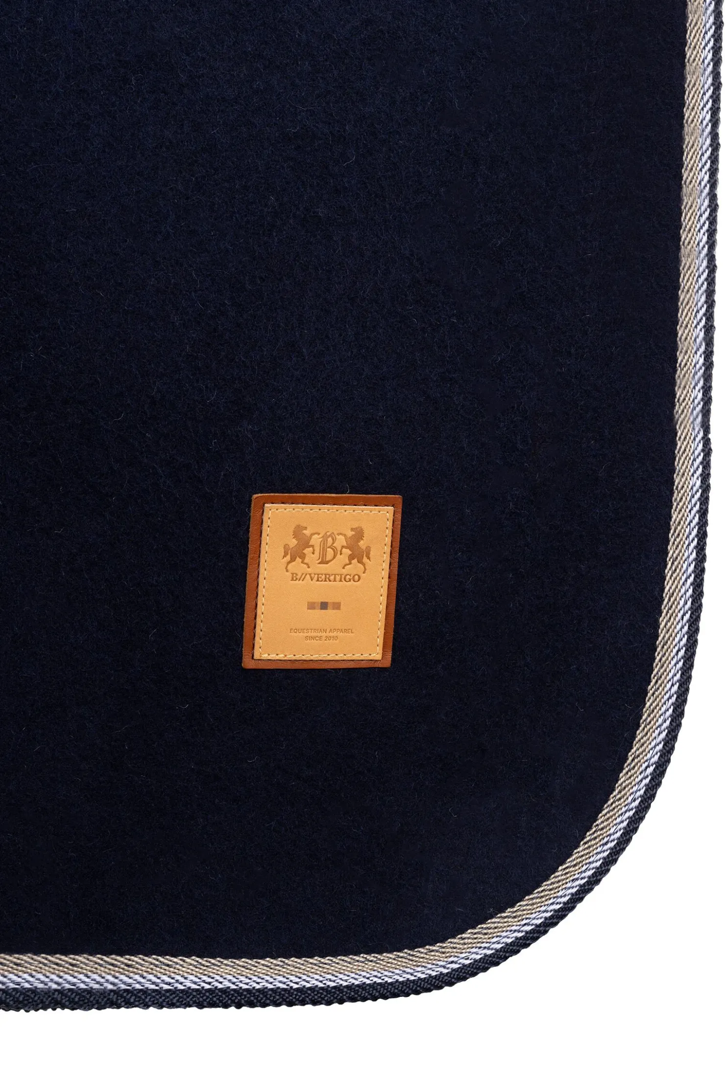 Dette nydelige ridedekkenet i ull har den klassiske B Vertigo-logoen på bakparten, og er laget av ull i høyeste kvalitet.