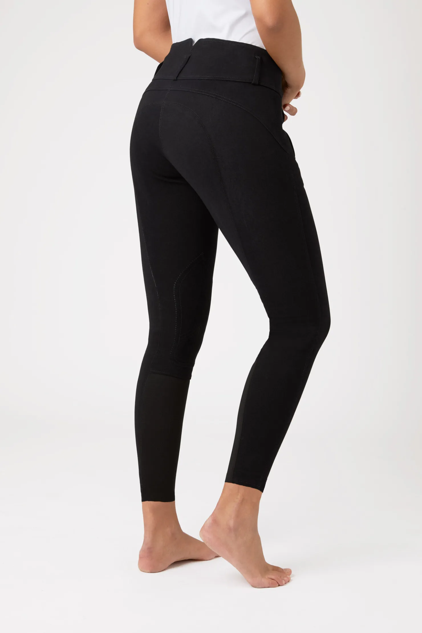 Vår populære Daniella ridebukser er nå tilgjengelig i en kneforsterket versjon, med lær! Det høye livet på disse ridebuksene er komfortabelt og støttende, og noe høyere bak. Det myke stoffet har akkurat nok stretch, og doble knapper foran samt beltehemper gir en god passform.