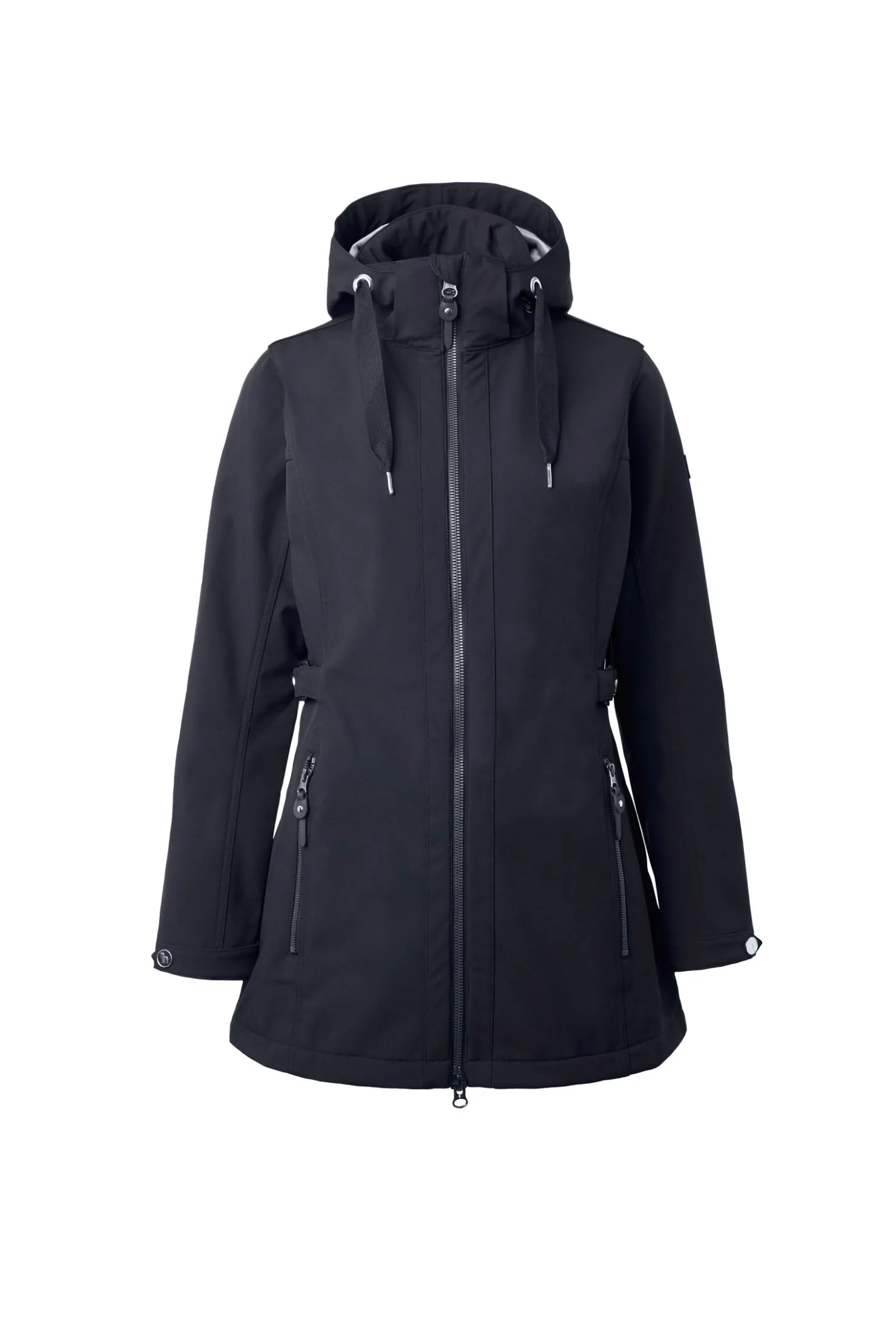 Mykt fleecefôr gjør denne komfortable, lange softshelljakken til et utmerket valg. Med denne flotte jakken holder du deg ikke bare varm, men du har også et stilig plagg i garderoben din slik at du alltid har den perfekte jakken å bruke på kalde vinterdager. En splitt bak gjør at du kan dekke salen uten at det påvirker ridningen din. Justeres i livet med stropper og trykknapper for å gi en god passform. Sidelommene og toveis glidelås forsterker det rene utseendet.