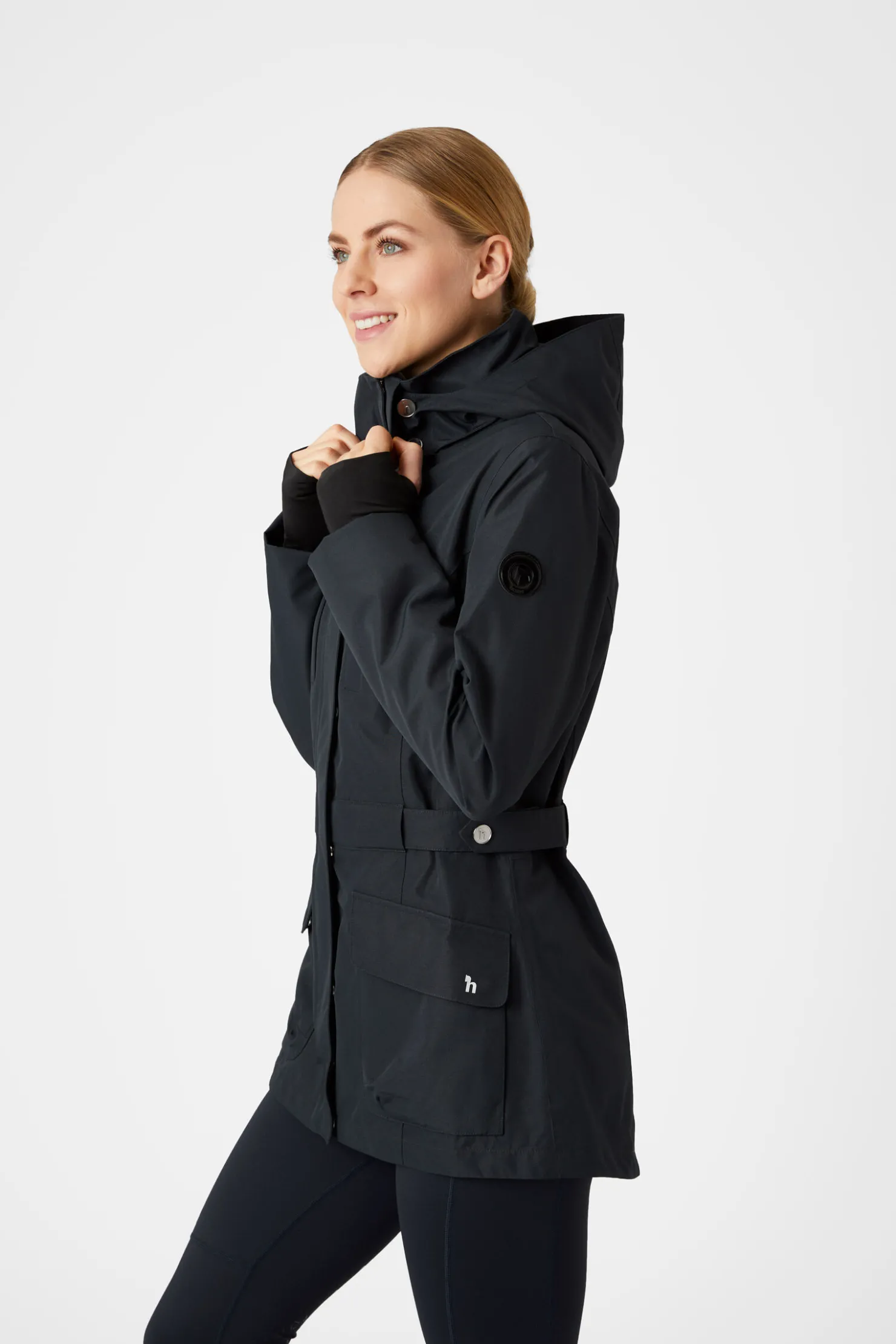 Et stilig design som er innsvingt i livet gir denne damejakken et fint, skreddersydd utseende. Lommene holder alt for deg, fra godbiter til bilnøkler og mobiltelefoner. Horze-emblemet på skulderen og fine detaljer som trykknapper og sterke nylonglidelåser gjør at denne kvalitetsjakken er like holdbar og funksjonell som den er fin. Stoffet er pustende og vanntett, og vil beskytte deg mot det varme sommerregnet. Ryggsplitt vil hjelpe deg med å dekke salen og gir mye bevegelsesfrihet. De sofistikerte fargene matcher med mange plagg i sesongens kolleksjon.