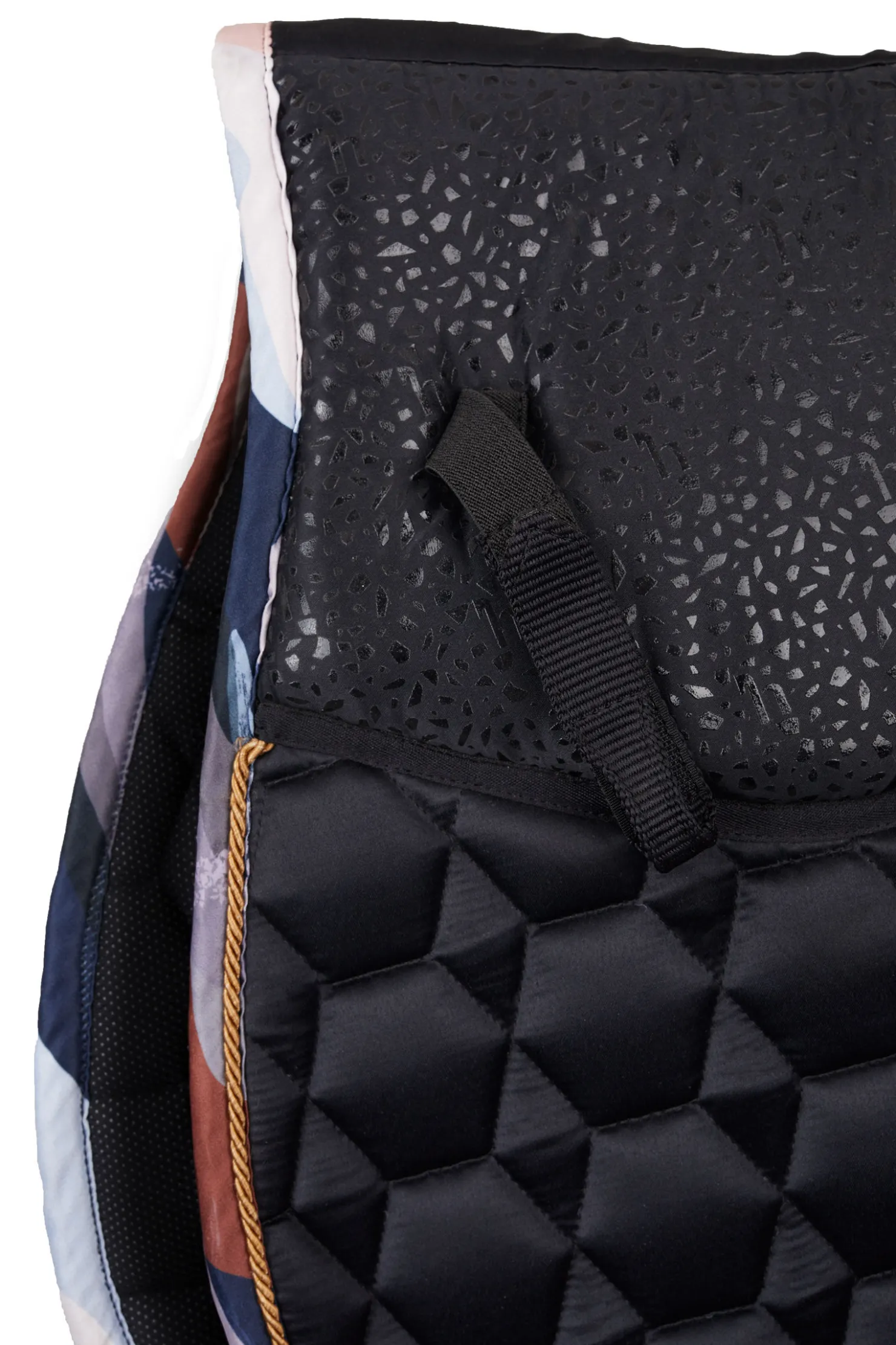 Sjabraken kommer i et sateng-lignende materiale som gir et elegant preg på hesteutstyret ditt. Det fôrede salromådet er forbedret med anti-skli silikontrykk, noe som gir en trygg og stabil passform. De justerbare gjordfestene og de lange salfestene gir et justerbart og trygt feste til salen. Det vatterte mønsteret gir et klassisk utseende, mens den fukttransporterende innsiden holder hesten din tørr og komfortabel. Med kontrastkant og Horze-logo viser denne sjabraken at den fokuserer på detaljer. Få en bedre rideopplevelse med Horze Terrazzo allroundsjabrak, en nødvendighet for alle ryttere.