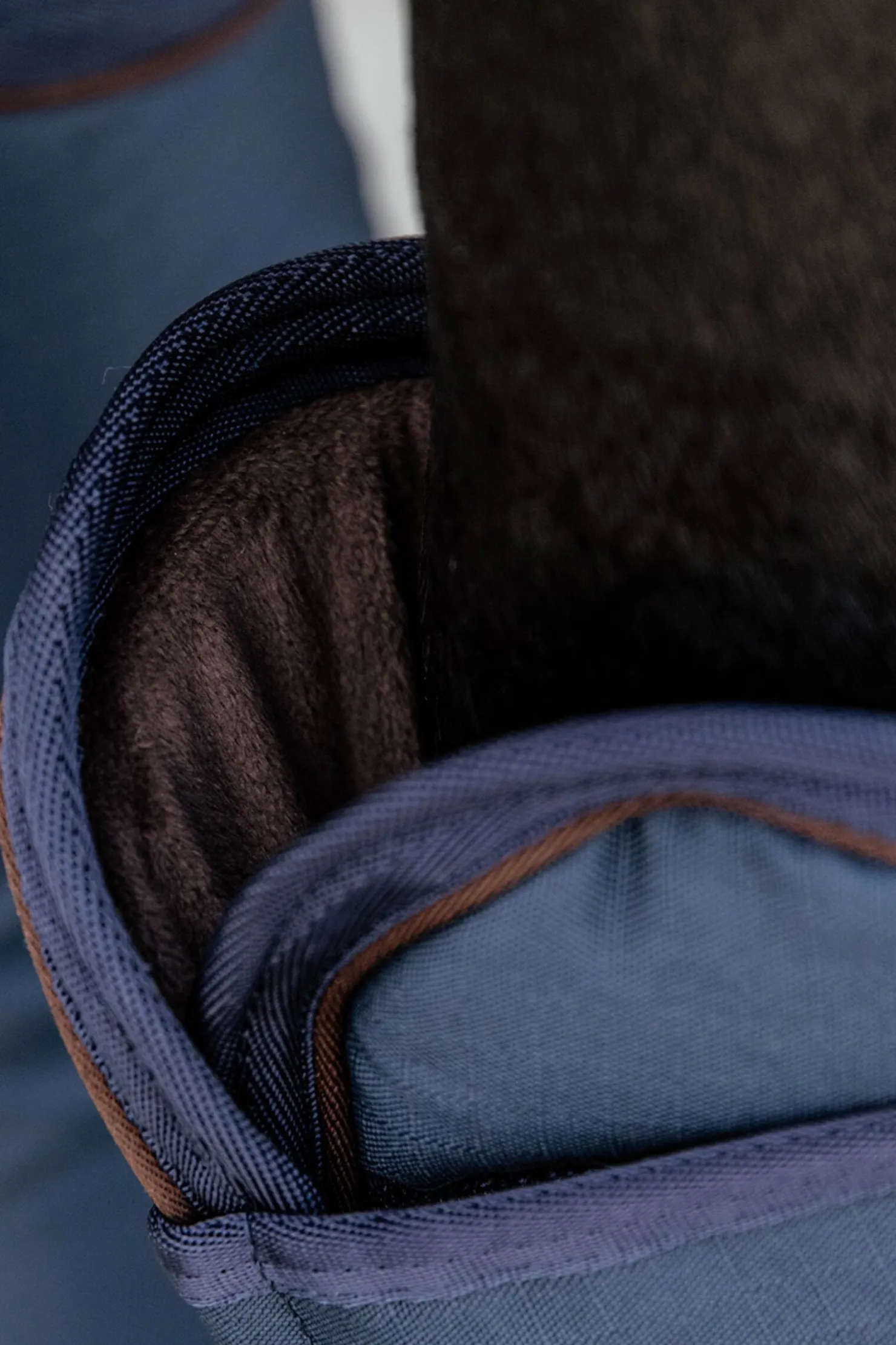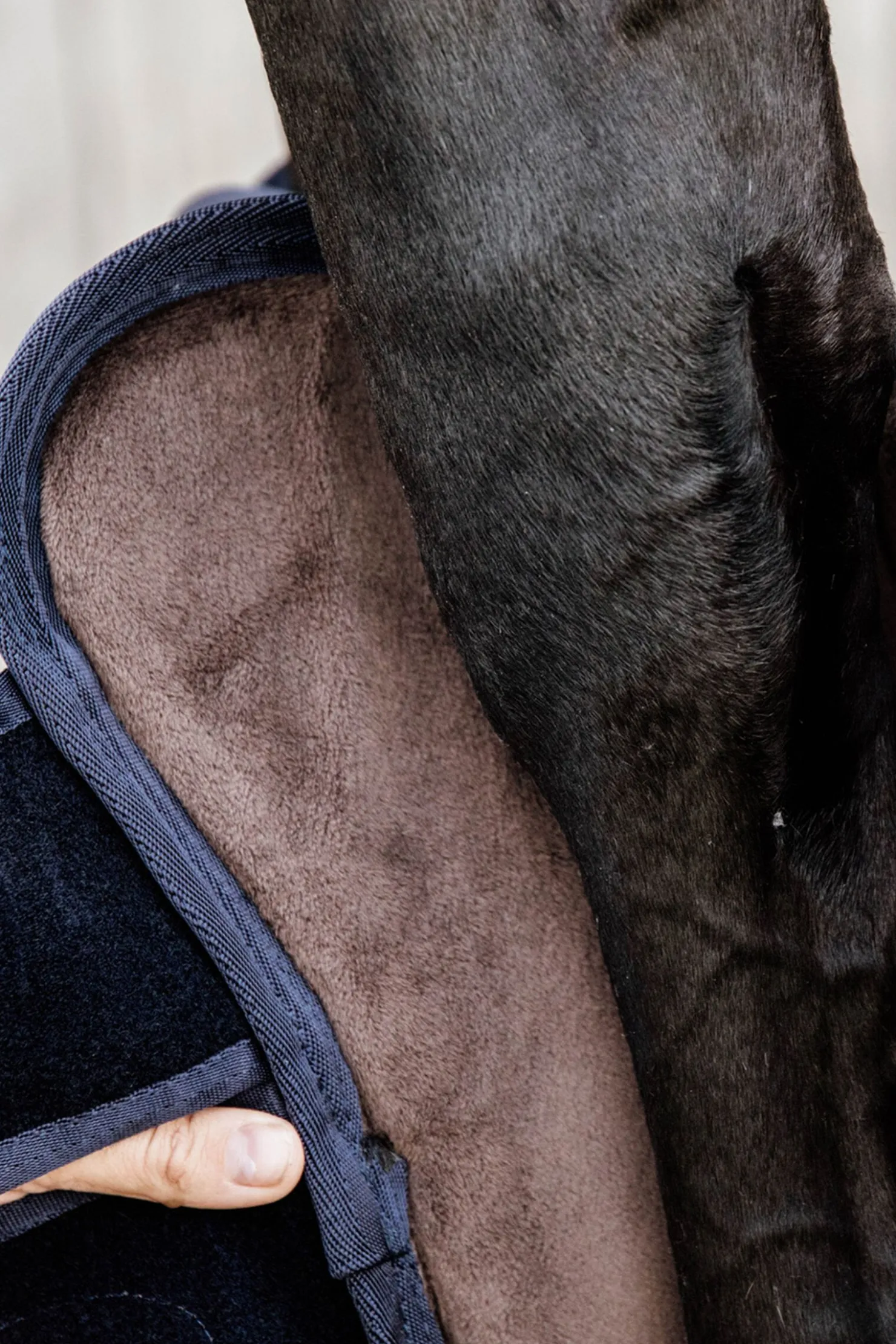 Hva er spesieltDisse sterke og komfortable transportbeleggene beskytter kronrand, kode, sener og hasene til hesten.Takket være det holdbare materialet vil disse transporbeleggene beskytte hesten din på alle turer dere skal på.Stoff og materialeUtsiden av transportbeleggene er laget i en sterk 600D ripstop polyester.Ripstop er en spesiell veveteknik som gjør stoffet mer motstandsdyktig mot slitasje og rifter.Det nederste området er forsterket med Kentuckys kunstige lær.Derfor vil de sensitive områdene rundt kronranden og ballepartiet være ekstra beskyttet.Transporbeleggene er fôret med kunstig kaninskinn.I tillegg til økt komfort gjør det kunstige kaninskinnet at hesten ikke får gnag, og samtidig regulerer det temperaturen på beina.På innsiden av belegget er det støtabsorberende skum for å gi maksimal beskyttelse.Alle disse materialene er lette, pustende, holdbare og sikrer hestens velferd mens du reiser.Form og størrelseBeleggene kommer i sett med fire.To frambeinsbelegg fra hoven og opp til kneet.To bakbeinsbelegg fra hoven og opp til hasen.Takket være tre sterke borrelåsfester trenger du ikke bekymre deg for at hesten skal miste dem under transport.