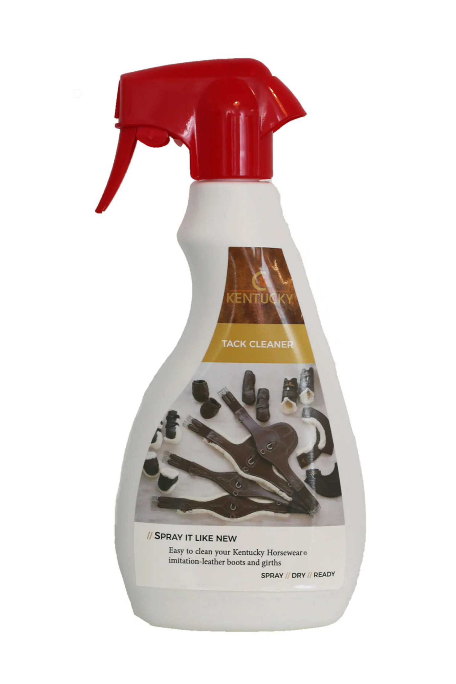 Kentucky Horsewear utstyrsrens, spray (500 ml) er effektiv når du skal vaske over støvler i kunstlær, gjorder og annet utstyr i kunstlær. Enkel å bruke. Spray det på tørre støvler eller gjorder og tørk av med et håndkle. Det gir materialet umiddelbart et skinnende utseende!