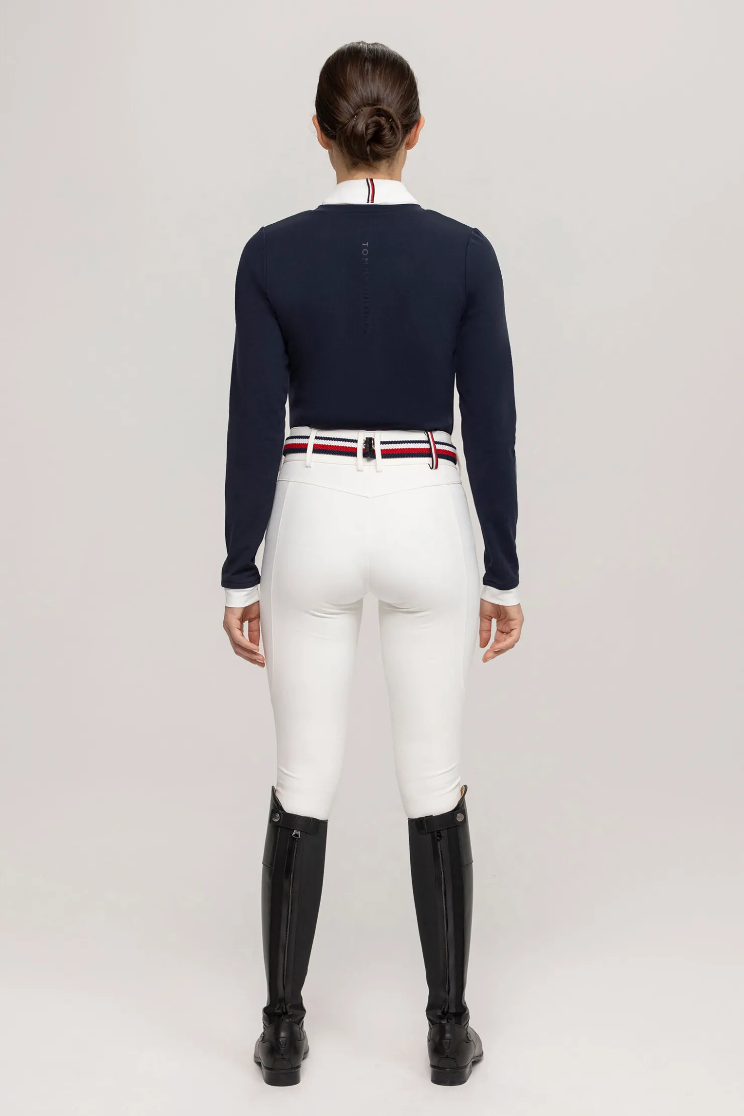 Den langermede 2-i-1 turneringsskjorten kombinerer den elegante stilen til en skjorte med krage og en avslappet V-hals genser. Den er utviklet for å holde deg varm på kalde og lange turneringsdager.