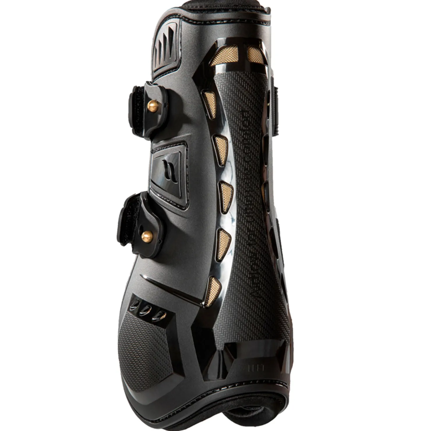 Støtdempende materiale rundt baksiden av senen for å minimere effekten av et slag.Welltex som forbedrer blodsirkulasjonen og støtter sener og ledd.Air-tech for maksimale pusteegenskaper.3D mesh teknologi for pusteegenskaper og styrke, sammen med innovativt, perforert, støtabsorberende skum.Ventilasjonshull langs senen og på siden.Solide stropper med borrelåslukking for at de skal sitte god, og for god individuell passform.Stroppene kan også kjøpes separat.