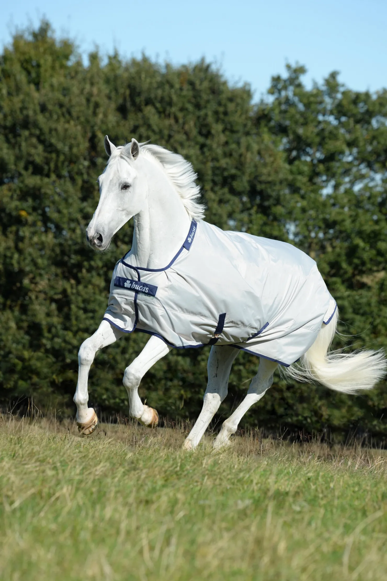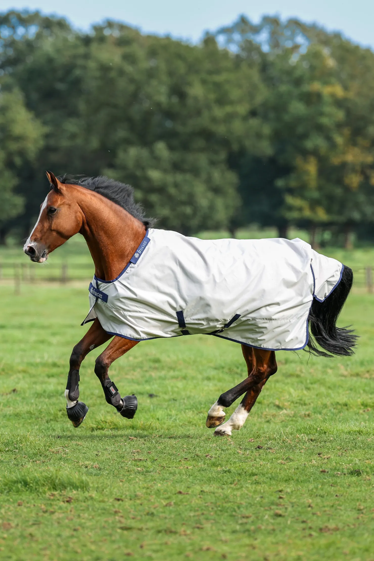 Sun Shower er et lett utedekken som gjør det til det perfekte valget når alle andre dekken er for tunge og varme. Det er utviklet for både regn og solskinn. Sun Shower utedekken er vanntett og pustende, og har et slitesterkt ytterlag av 840D nylon. Dekkenets sølvfarge er en ekstra fordel da det reflekterer sollys og hindrer at hesten din overopphetes. Dekkenet er foret med et spesialdesignet stort vaffelmeshfor, som bidrar til å holde luften sirkulerende under dekkenet mellom lagene, slik at hesten holder seg kjøligere på varme dager.