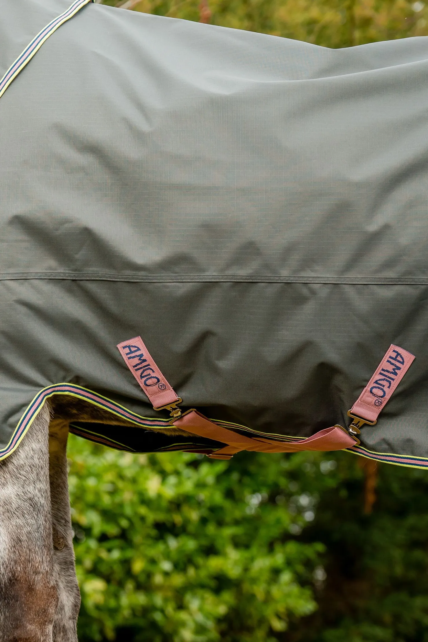 Horseware Amigo 600D Ripstop svært robust og har en vanntett og pustende utside.Utskjæringen til frambeina gir hesten din mer bevegelsesfrihet.Dette dekkenet uten fyll er perfekt for regndager på sommeren, eller i en overgangsperiode.