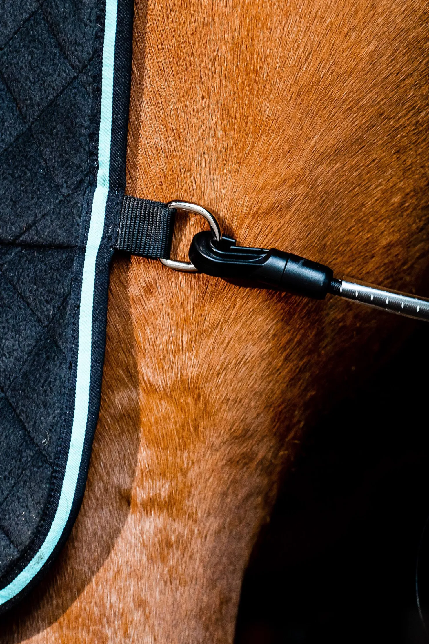 Et veldig behagelig dekken etter trening, eller for reise på de kjølige høstdagene. Sikrer at hesten din holder seg varm mens den skritter ned. Dette dekkenet trekker effektivt fukt vekk fra pelsen, samtidig som det holder på varmen i de viktigste områdene. Polarfleecen er svært effektiv når det kommer til å tørke og trekke vekk fukt, samtidig som det holder hesten varm. En vattert utside i 100 gram holder utmerket på varmen på de viktigste muskelgruppene. Innsiden og utsiden med polarfleece, kombinert med vattert fiberfyll, gir maksimal pusteevne og fukttransporterende egenskaper. En formet utskjæring gjør at denne cooleren tilpasser seg hestens form, noe som gir en svært komfortabel passform og et elegant utseende. De doble beinbuene gir hesten mer bevegelsesfrihet når den lastes på henger, eller når den skritter ned. Kommer med en enkel borrelåslukking foran og to avtakbare kryssgjorder. Dette dekkenet kan lett tas av og på, selv om hesten er lastet på transporten.