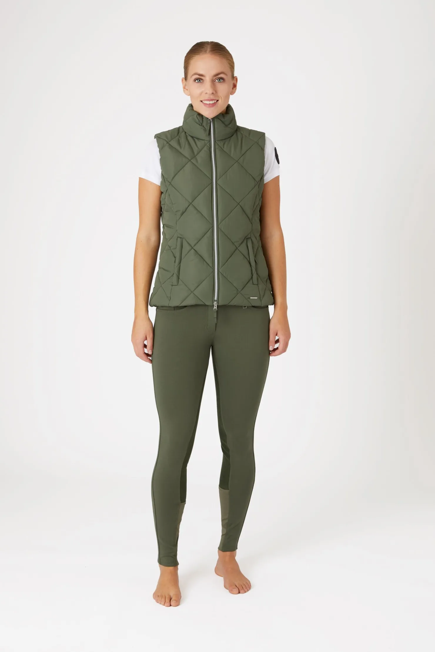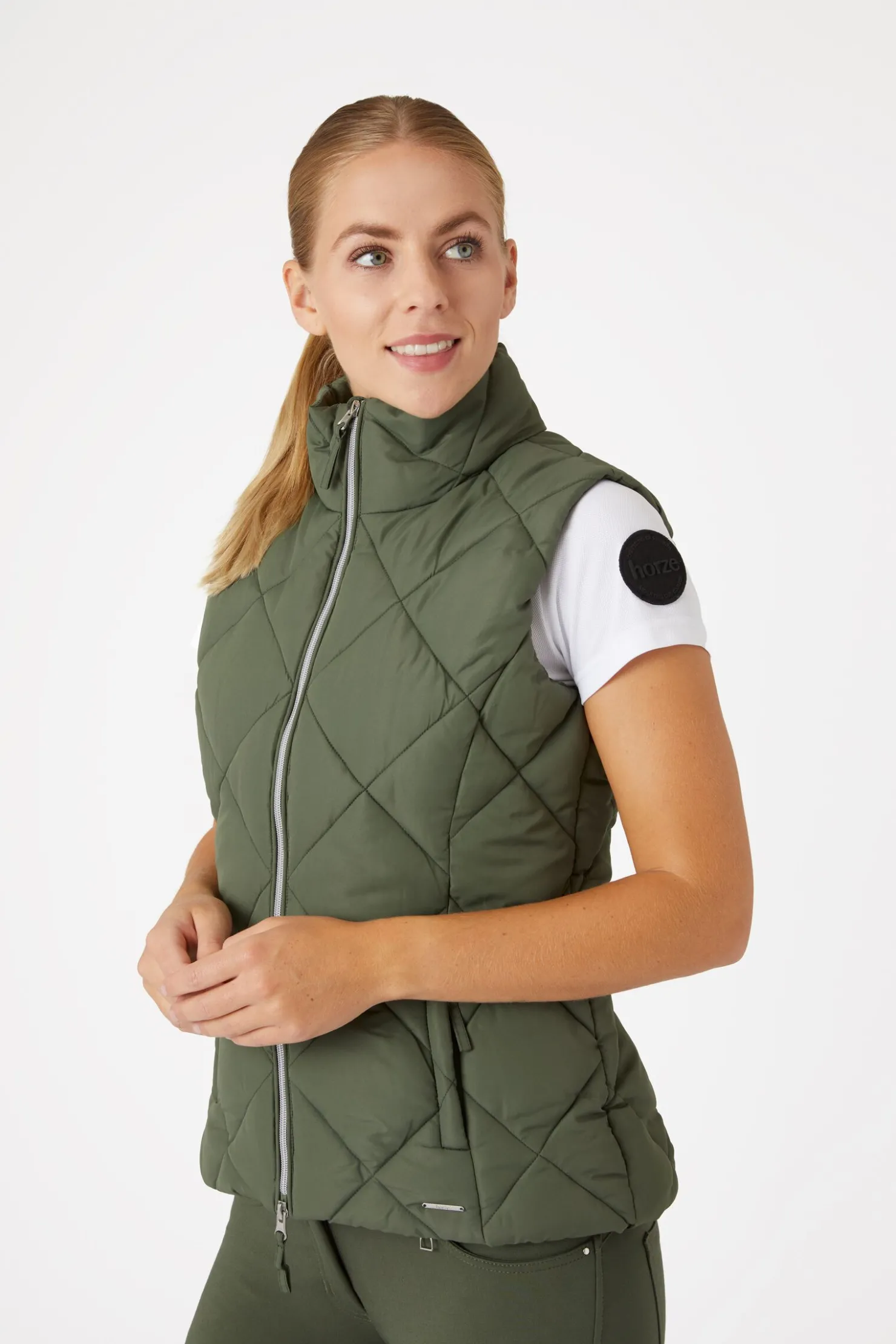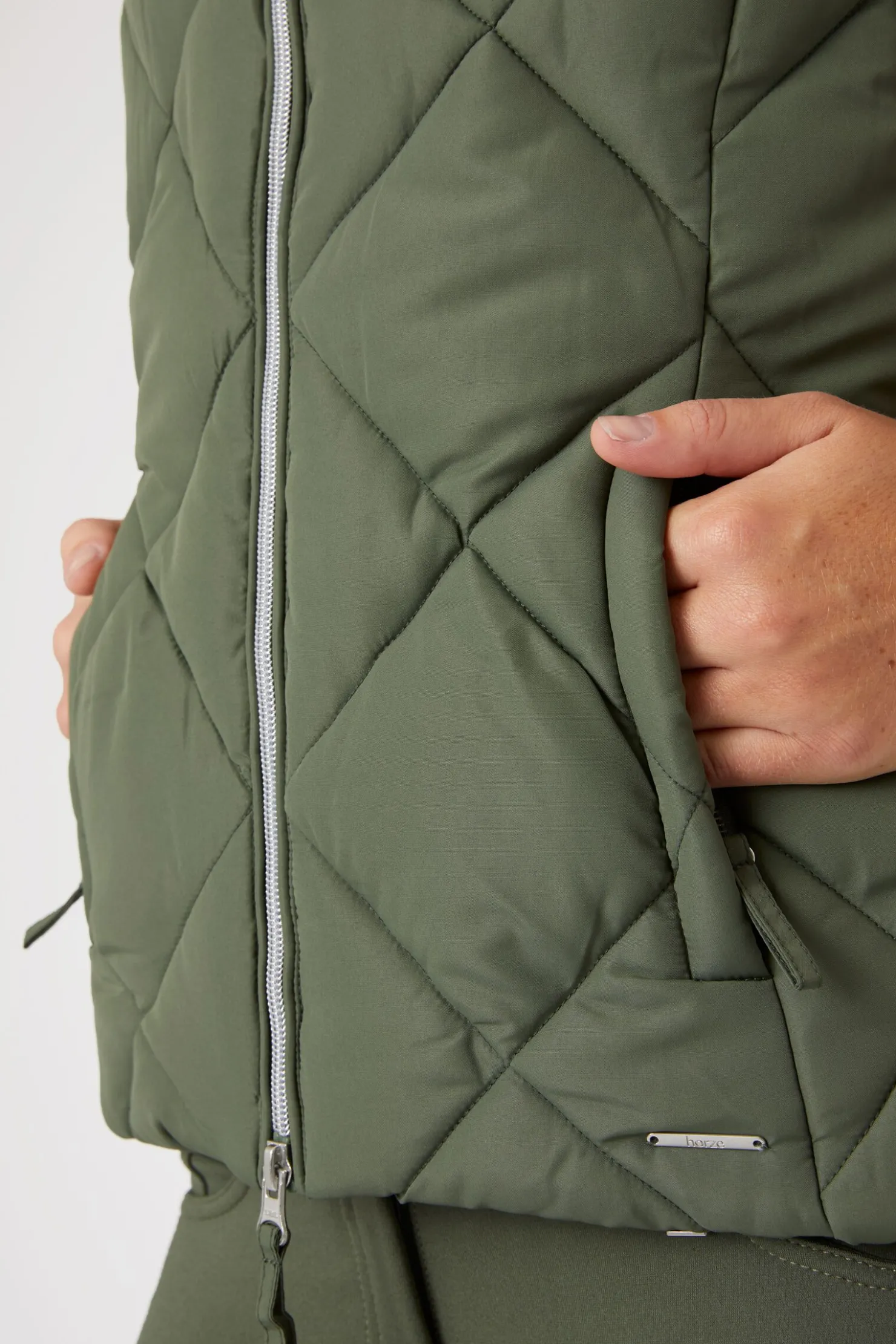 Horze Carola vest er lett og svært komfortabel.Fôringen holder deg varm, og det vann- og vindavvisende stoffet er perfekt for kalde og regnfulle dager.To glidelåslommer holder eiendelene dine trygge.Tidløse farger vil matche din ridegarderobe perfekt.