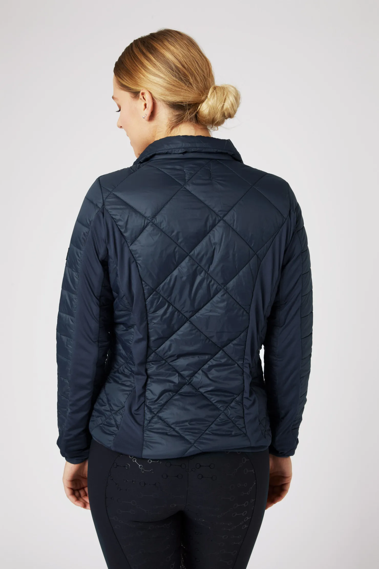 Tynn polstring med pustende stretch-paneler på ryggen og bak på ermene gir en perfekt passform på denne nydelige, lette jakken. Perfekt å bruke mellom årstider og på kjølige morgenritt, da denne jakken har lett fôr som varmer komfortabelt, uten å gjøre det for varmt. Den stilige vatterte stilen har et nydelig, smalt liv.