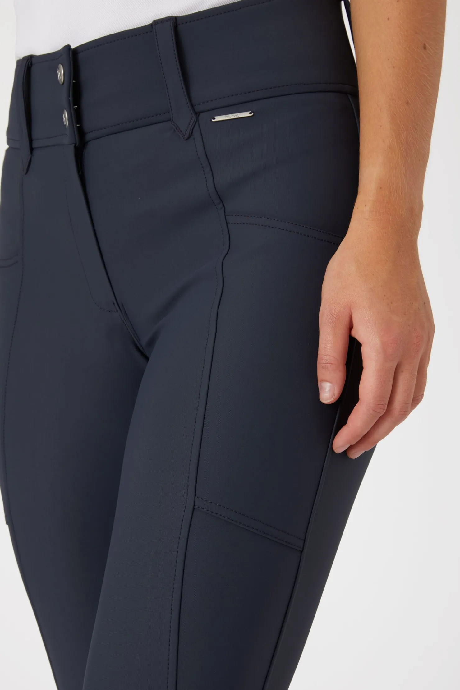 - Small metal Horze logo on hip