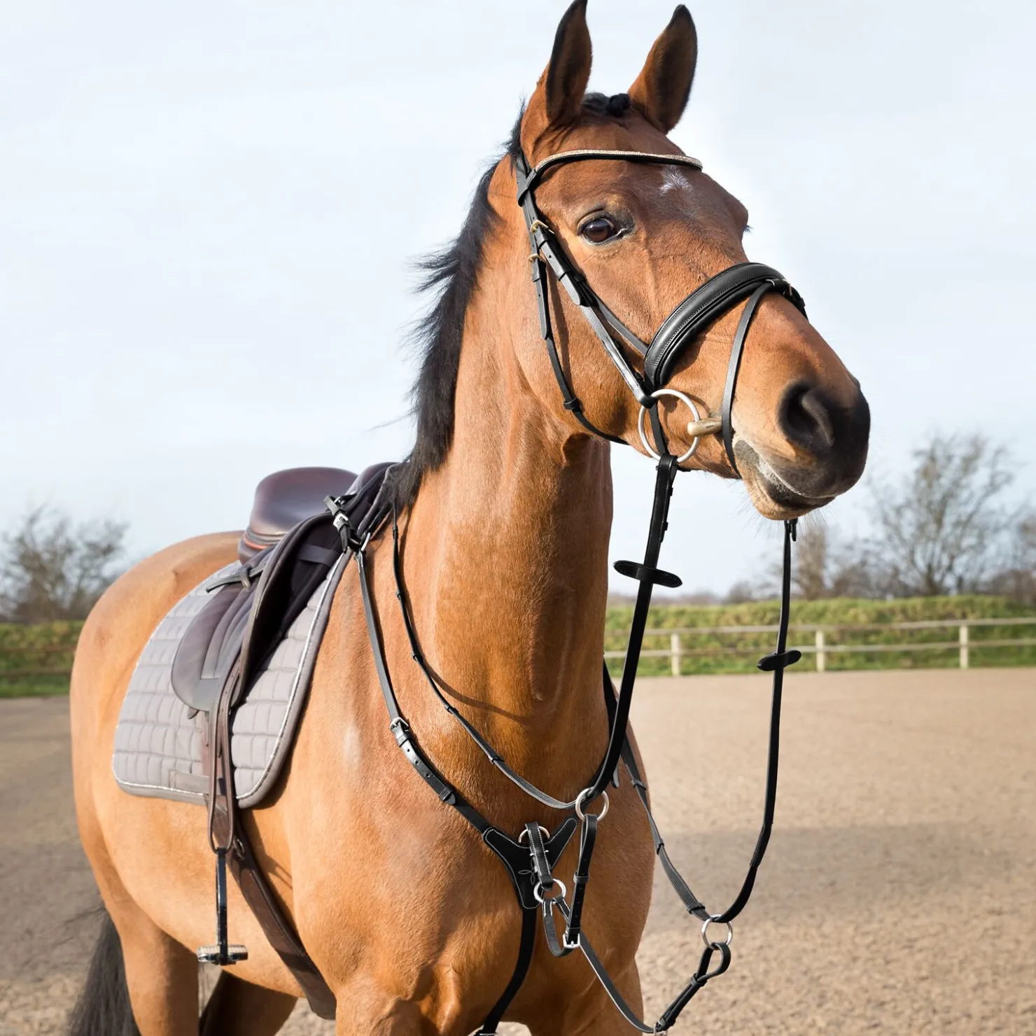 Ri med stil med dette flott forstykket på hesten din. Justerbart jaktforstykke kombinert med martingal, som har flotte detaljsømmer og lett kan justeres.