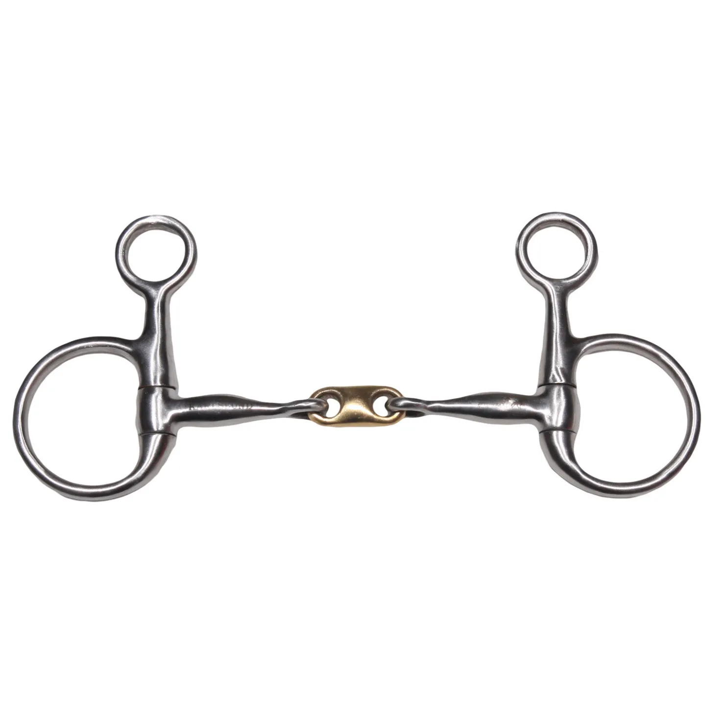 Tre-delt B-bitt med lett korreksjon laget i børstet rustfritt stål og midtledd i gul kobber.