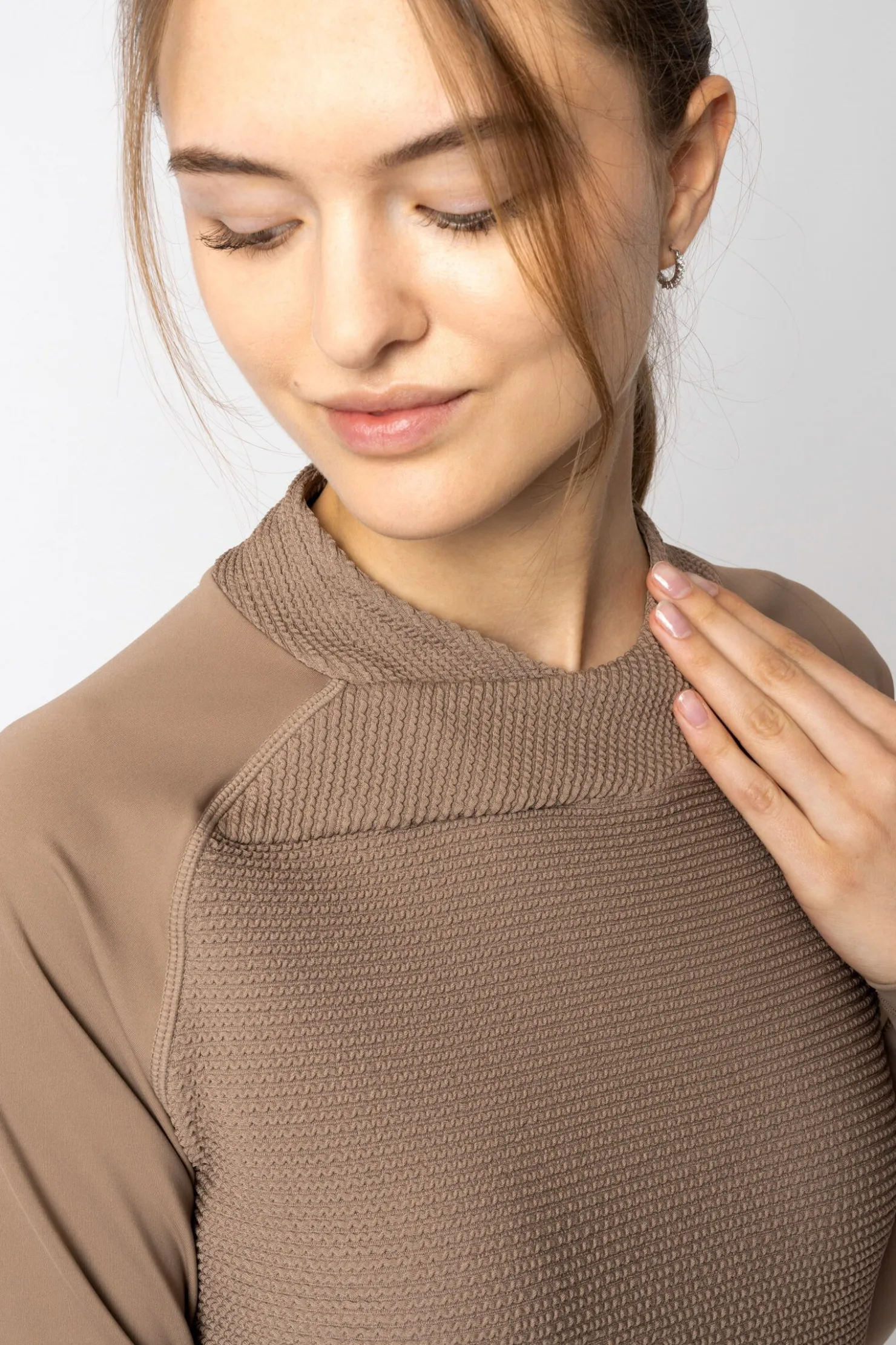 - Veldig mykt, elastisk stoff. Hurtigtørkende. Pustende. Mock-neck. Glatte armer
