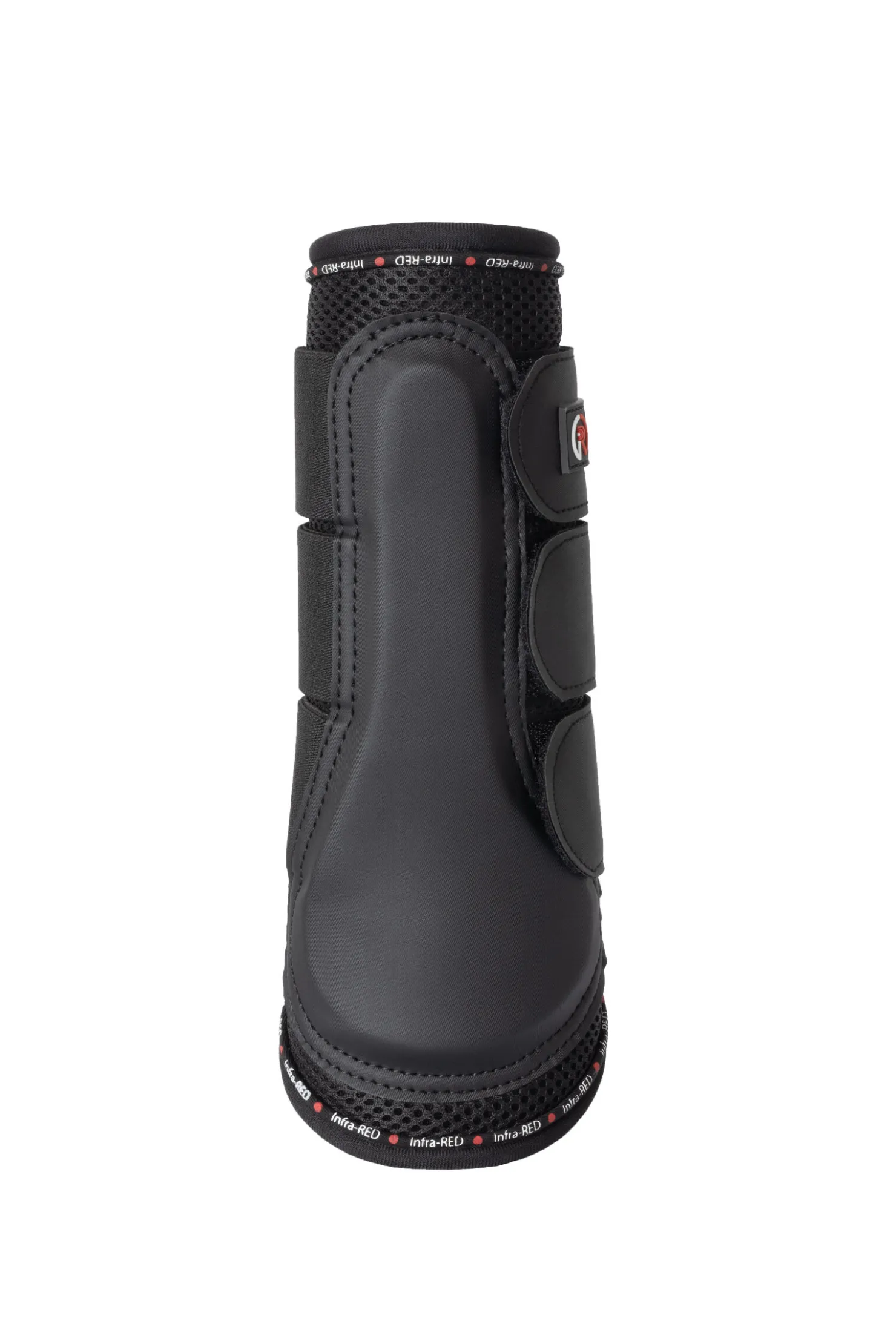 Pustende stryksokker med infrarød innside og stryksone i holdbar ballistisk nylon. De keramiske partiklene som er vevd inn på innsiden absorberer hestens kroppsenergi og frigjør lange, infrarøde stråler som trenger dypt gjennom huden og har en stimulerende effekt på blodsirkulasjonen i beinet. Dette forbereder beinet på de belastninger av sener og ledd som kommer under trening.