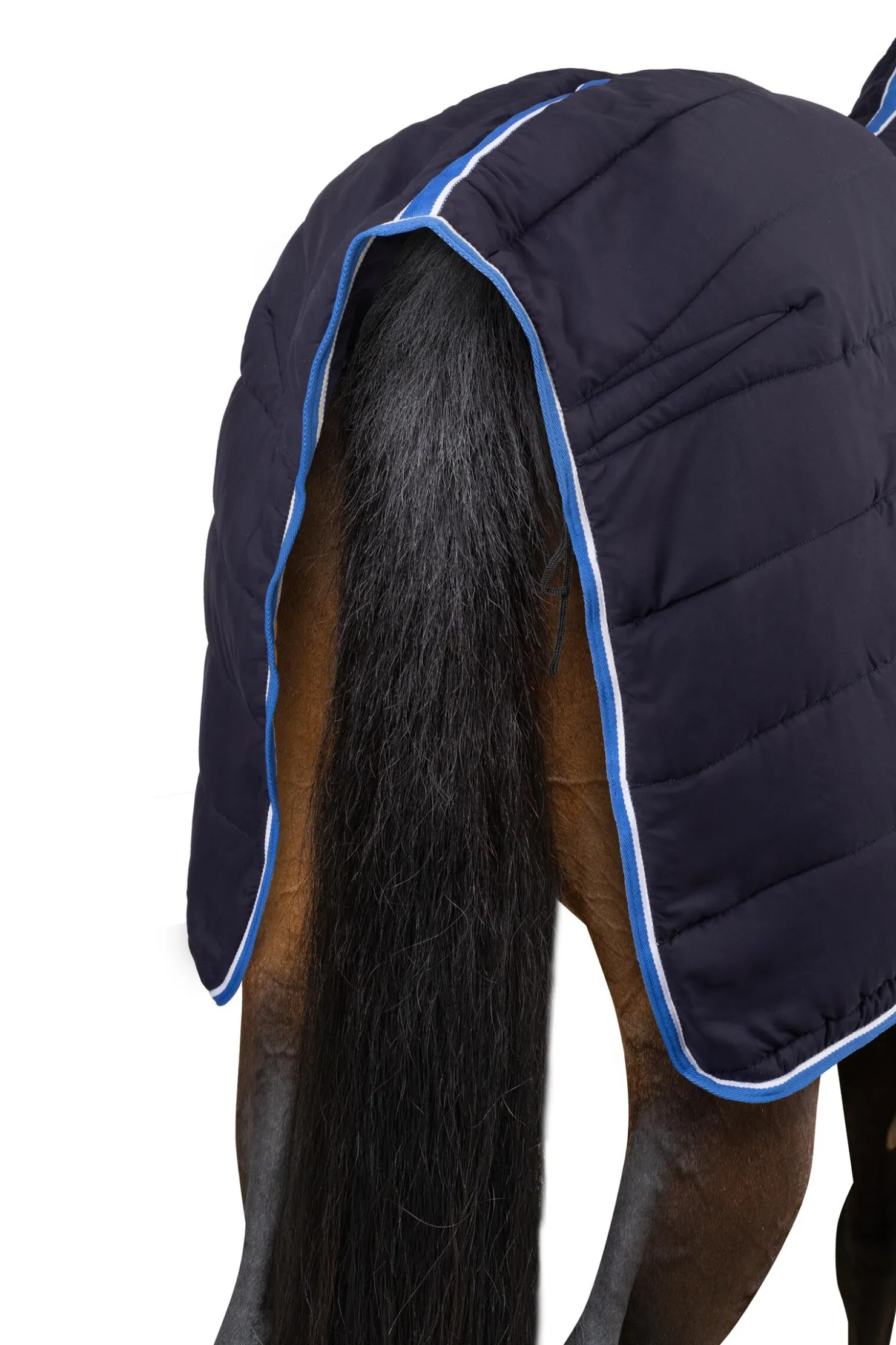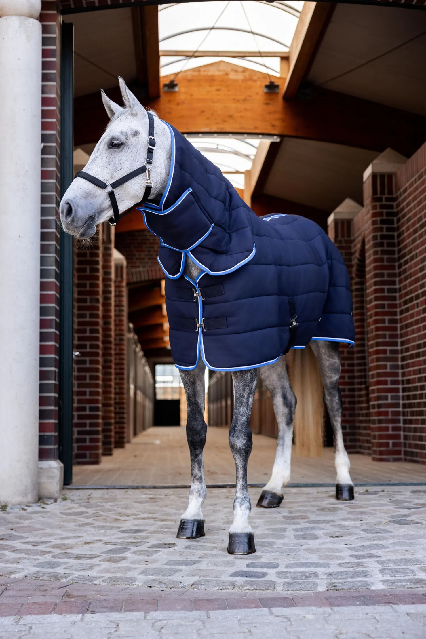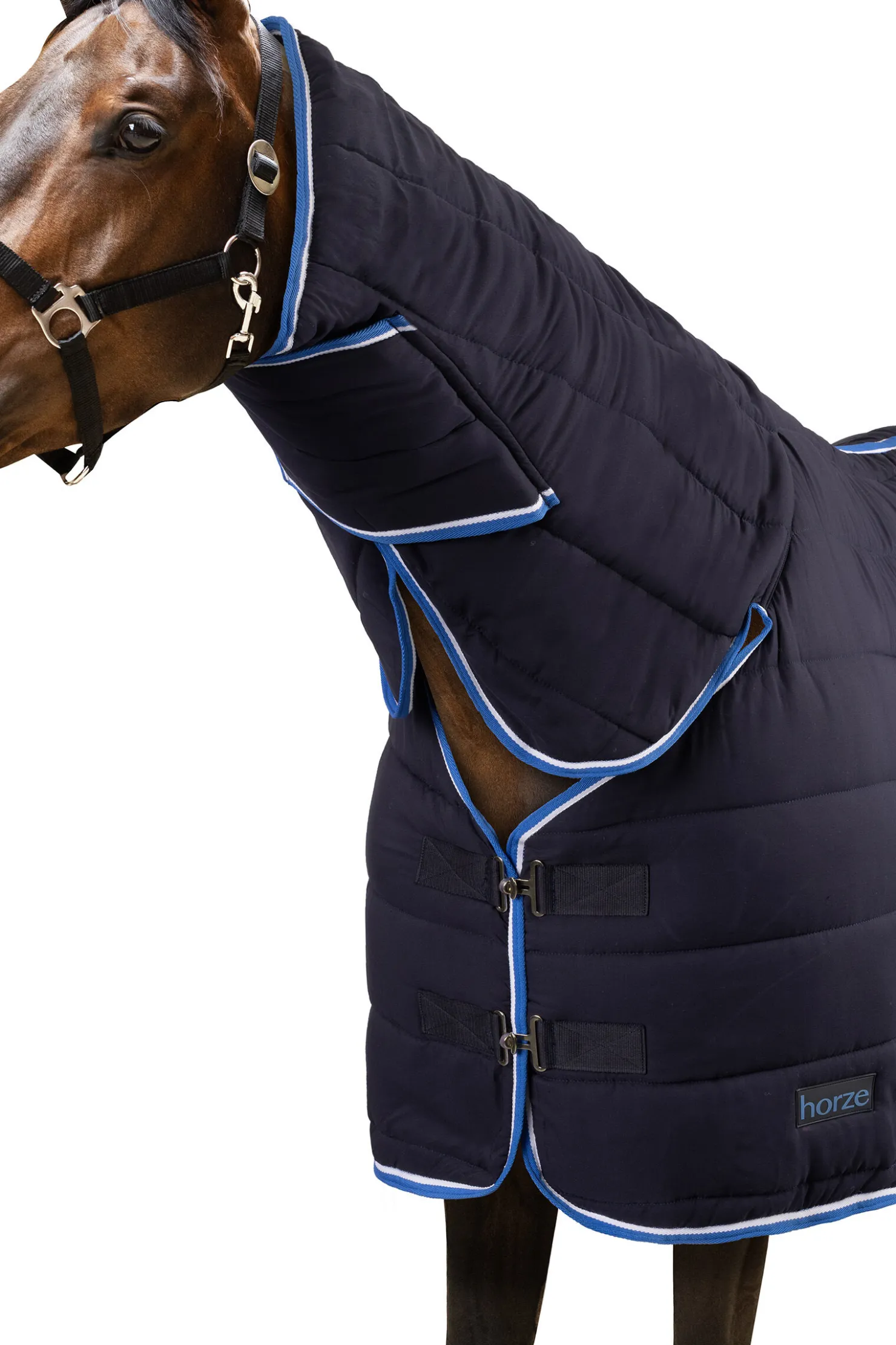 Dette lette dekkenet med hel hals kan brukes for seg selv eller kombineres med et utedekken.Det pustende materialet er laget med overflate med anti-skli.Ekstra T-spenne foran, kryssgjorder og halestropp holder det på plass.Borrelåsfester ved halsen gjør det enkelt å bruke.Et tidløst design gjør at du kan bruke dette dekkenet sesong etter sesong.