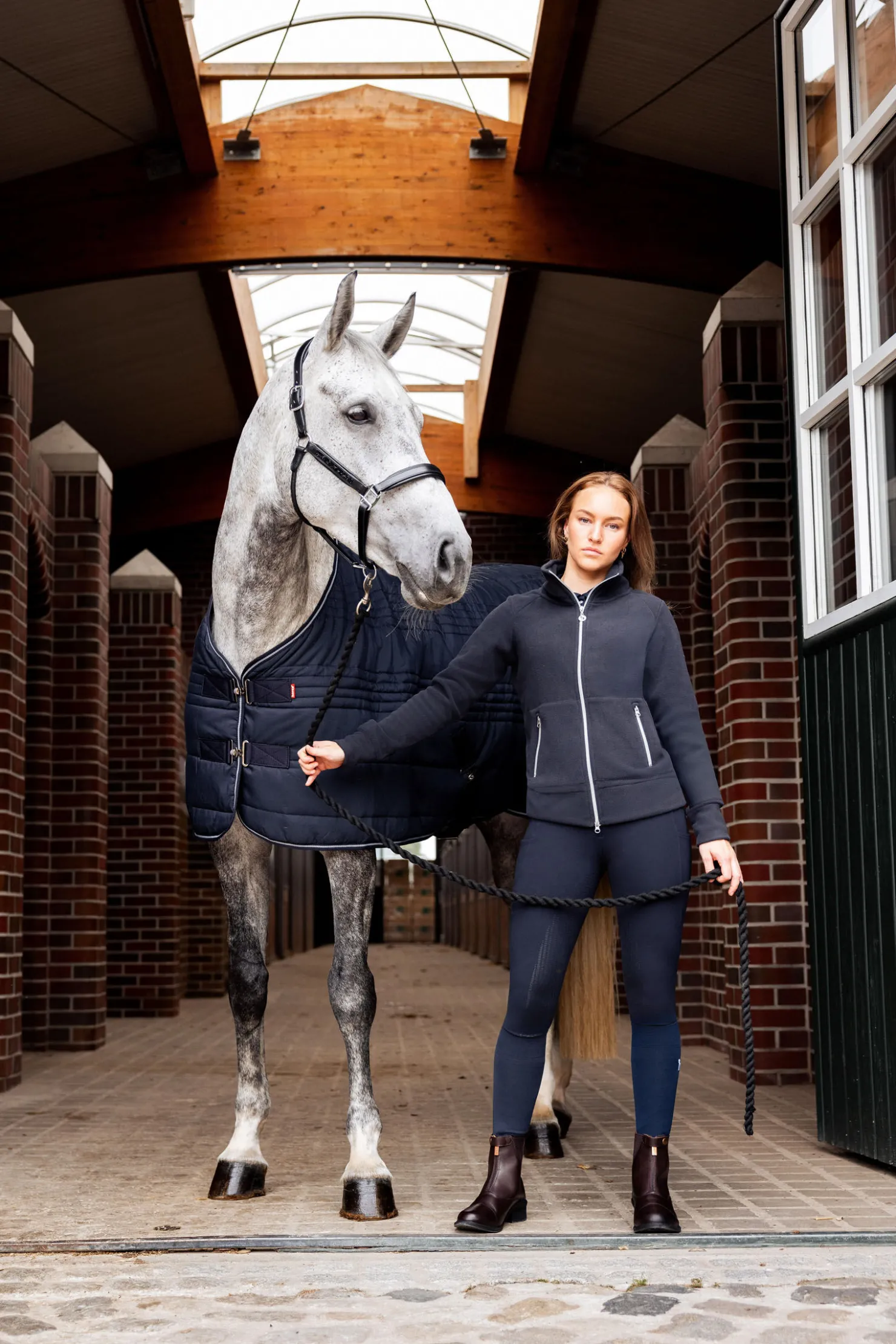 Det lette Horze Kingsley stalldekken med 150 gram fyll er akkurat tykt nok til et varmt lag uten å bli klumpete. Doble T-spenner for lukking foran, og kryssgjorder holder dekkenet på plass sammen med en halesnor. Dette dekkenet er robust nok til å brukes som utedekken også!