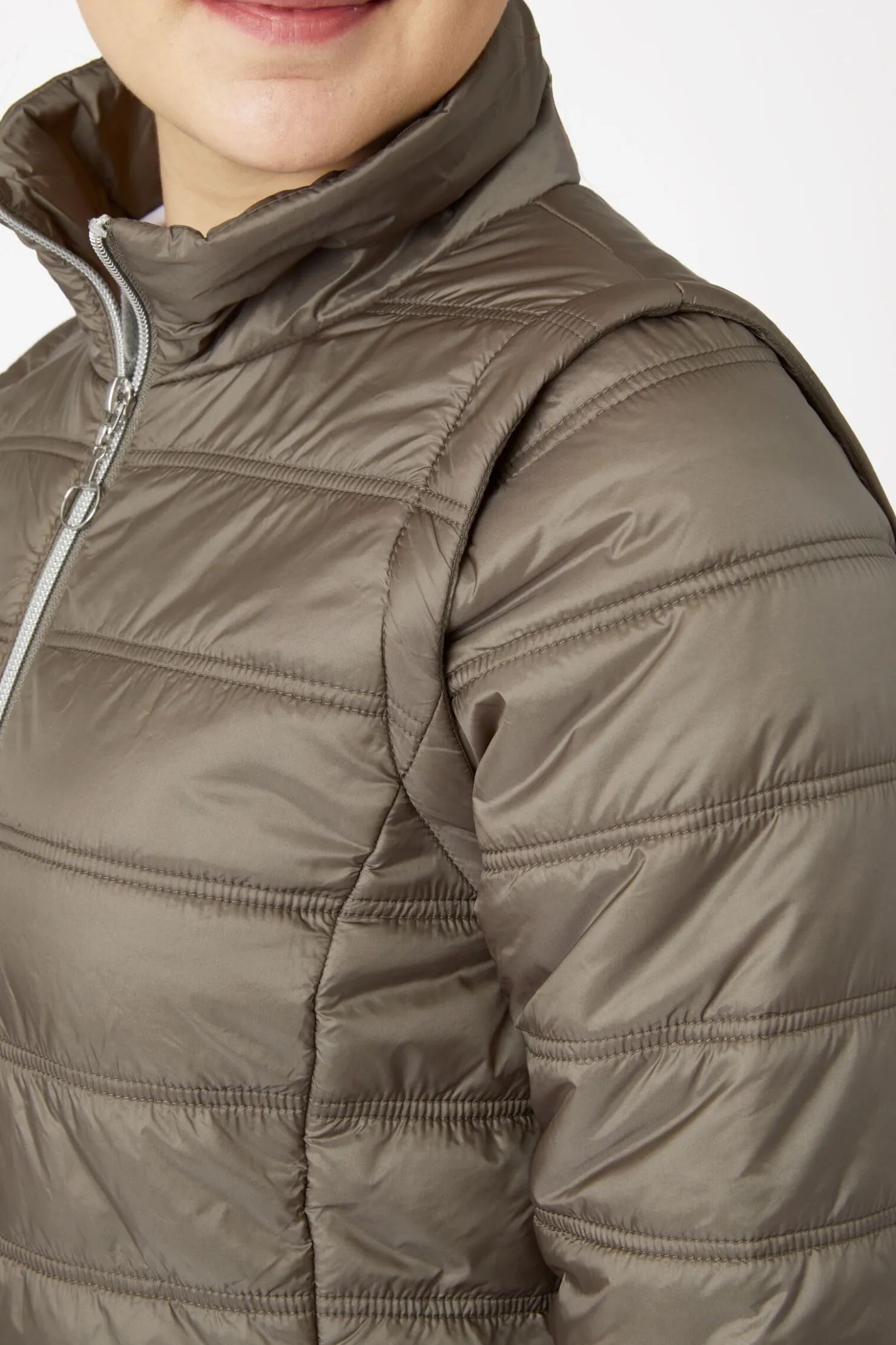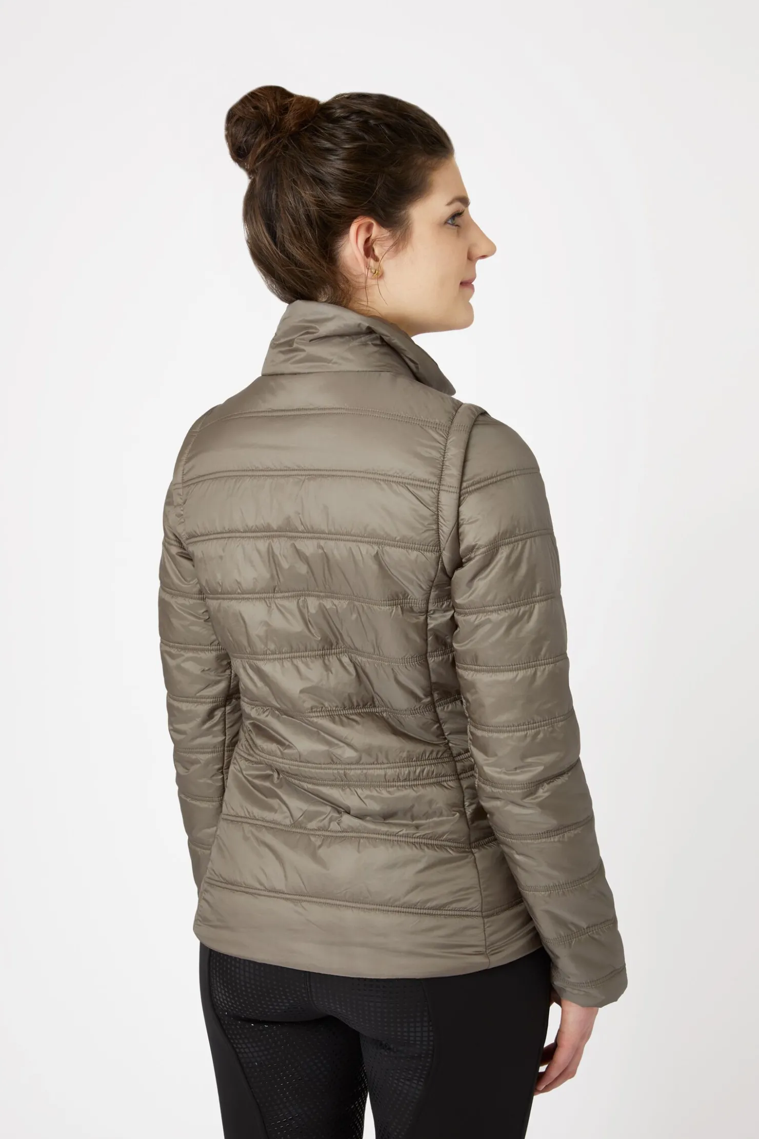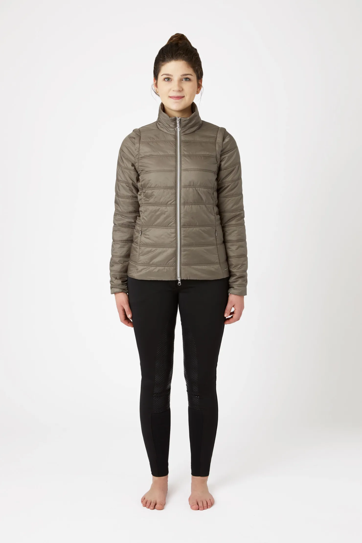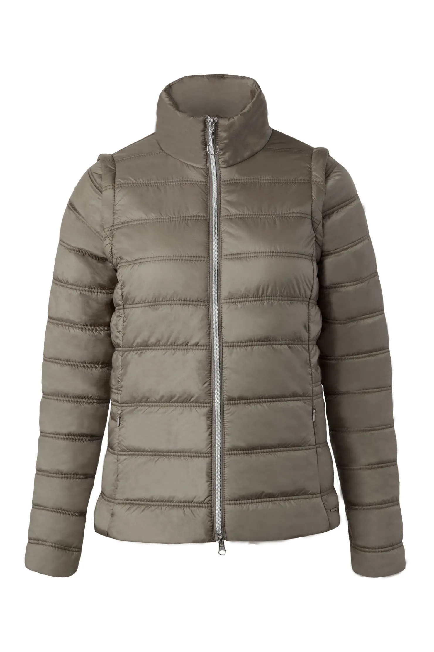 Den lette Horze Natalie jakken med avtakbare ermer kan enkelt gjøres om til en vest.Ermene festes med glidelås.Jakken er laget av pustende, vannavvisende materiale, noe som gjør den superpraktisk.Tilpass den til dine behov med den justerbare snoren i livet.Glidelåslommer holder telefonen og nøklene dine trygge.