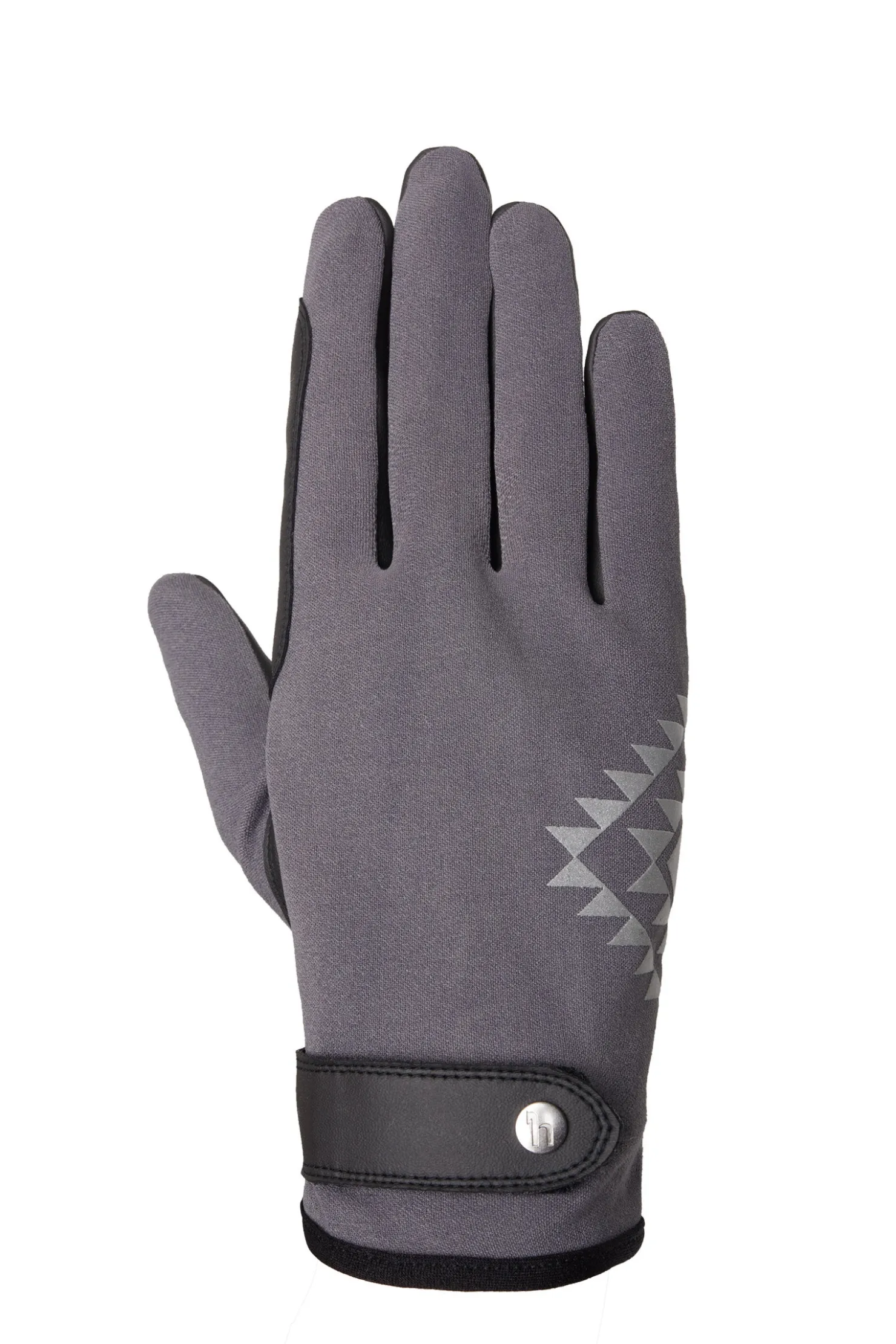 Perfekt sommerhanske med det lette, elastiske stoffet.Justerbar borrelås for en optimal passform.Serino-stoff i håndflaten for et godt grep om tøylene, med ekstra forsterking der du holder tøylene.Varmepreget Aztec-trykk på håndbaken.
