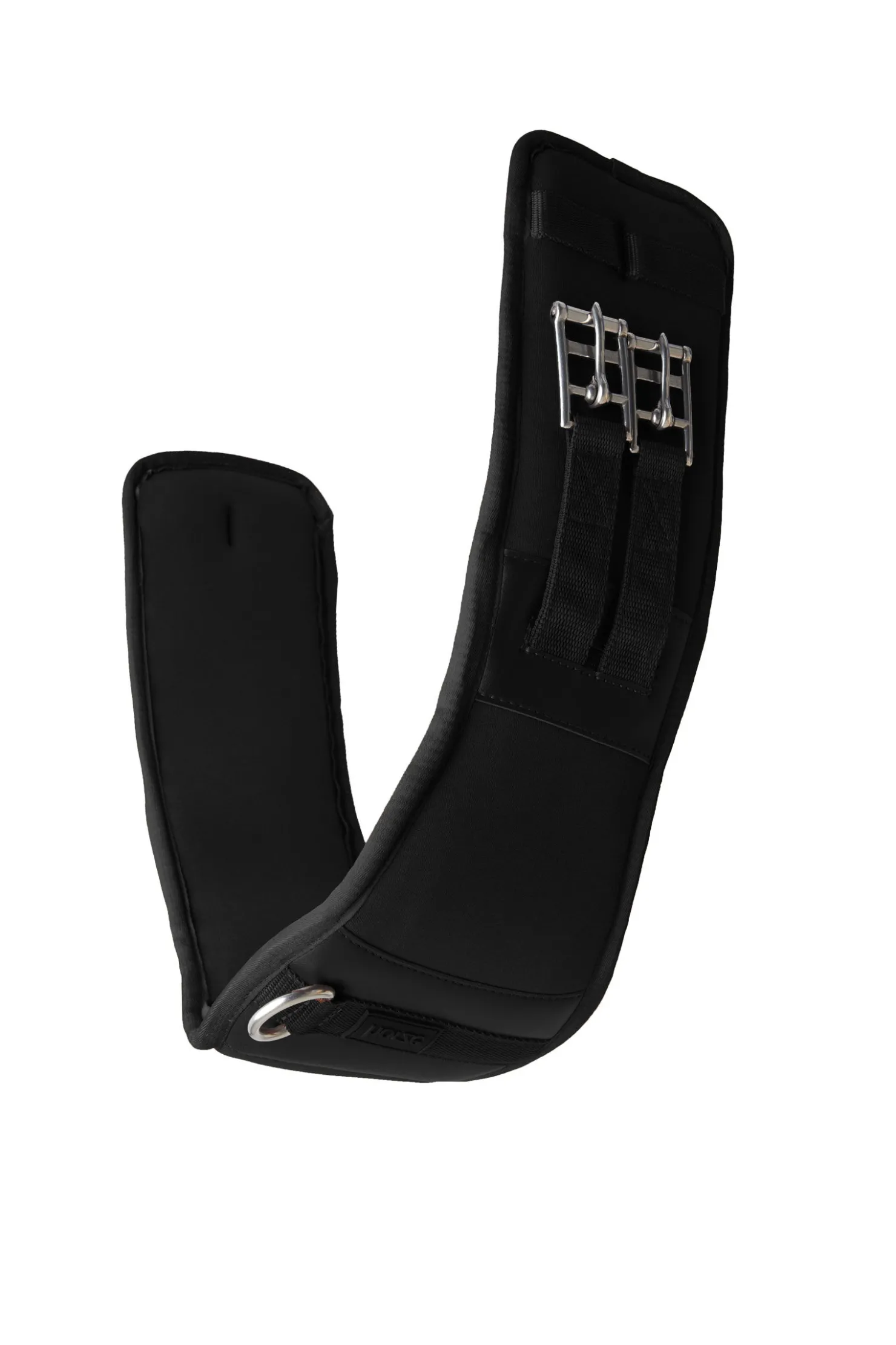 Myk, formet dressurgjord i neopren uten strikk. For mer komfort strekker neoprenen seg forbi rullespennene, og forhindrer derfor gnag og trykkpunkter. Den bredere delen på midten gir god trykkfordeling, mens mindre materialer langs albuen gir god bevegelsesfrihet. Gjorden kommer med rullespenner så den er lett å feste, og en D-ring i midten for enkelt feste av hjelpetøyler. Webløkker holder gjordstroppene på plass. Logoskilt i gummi.