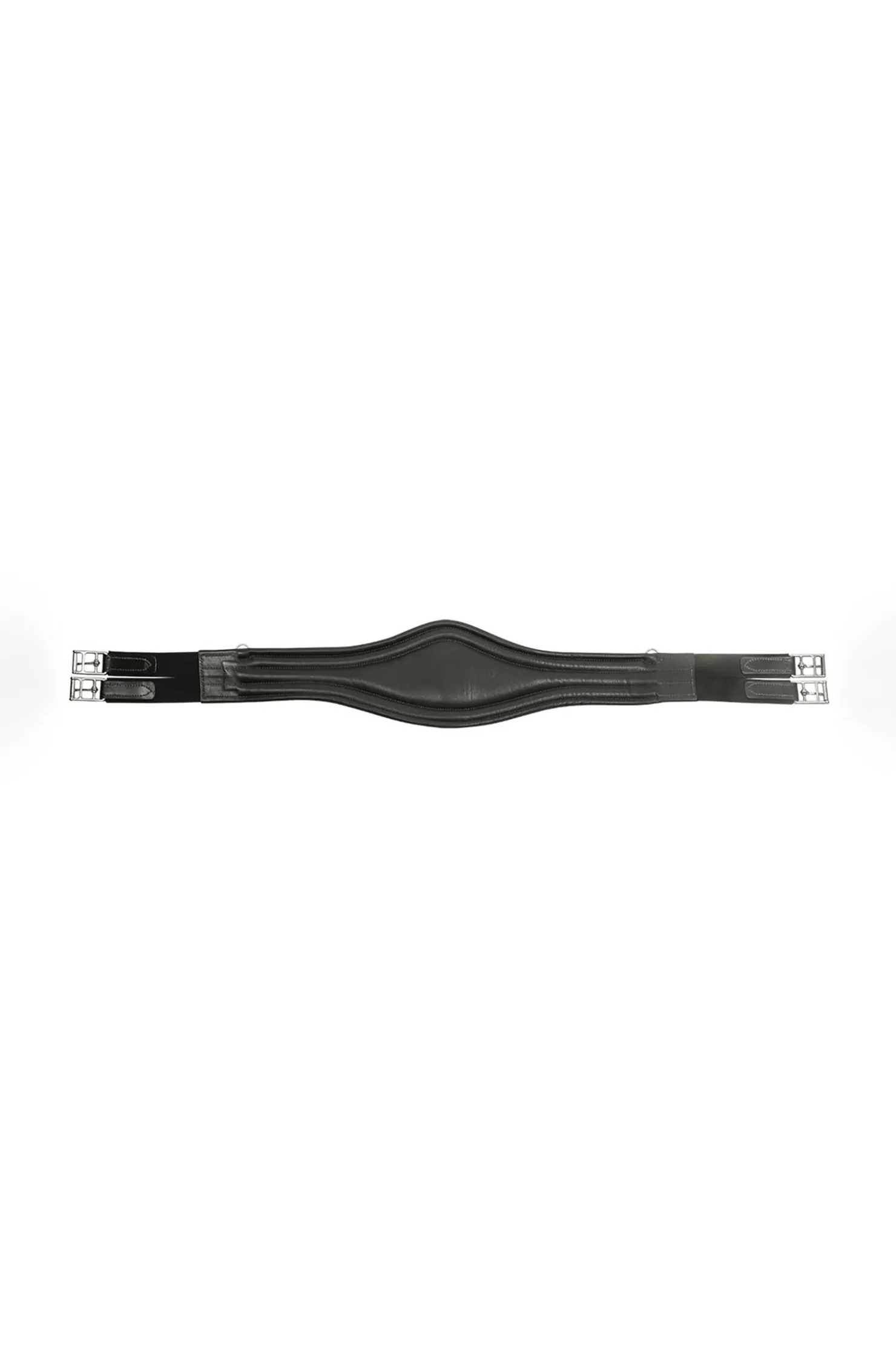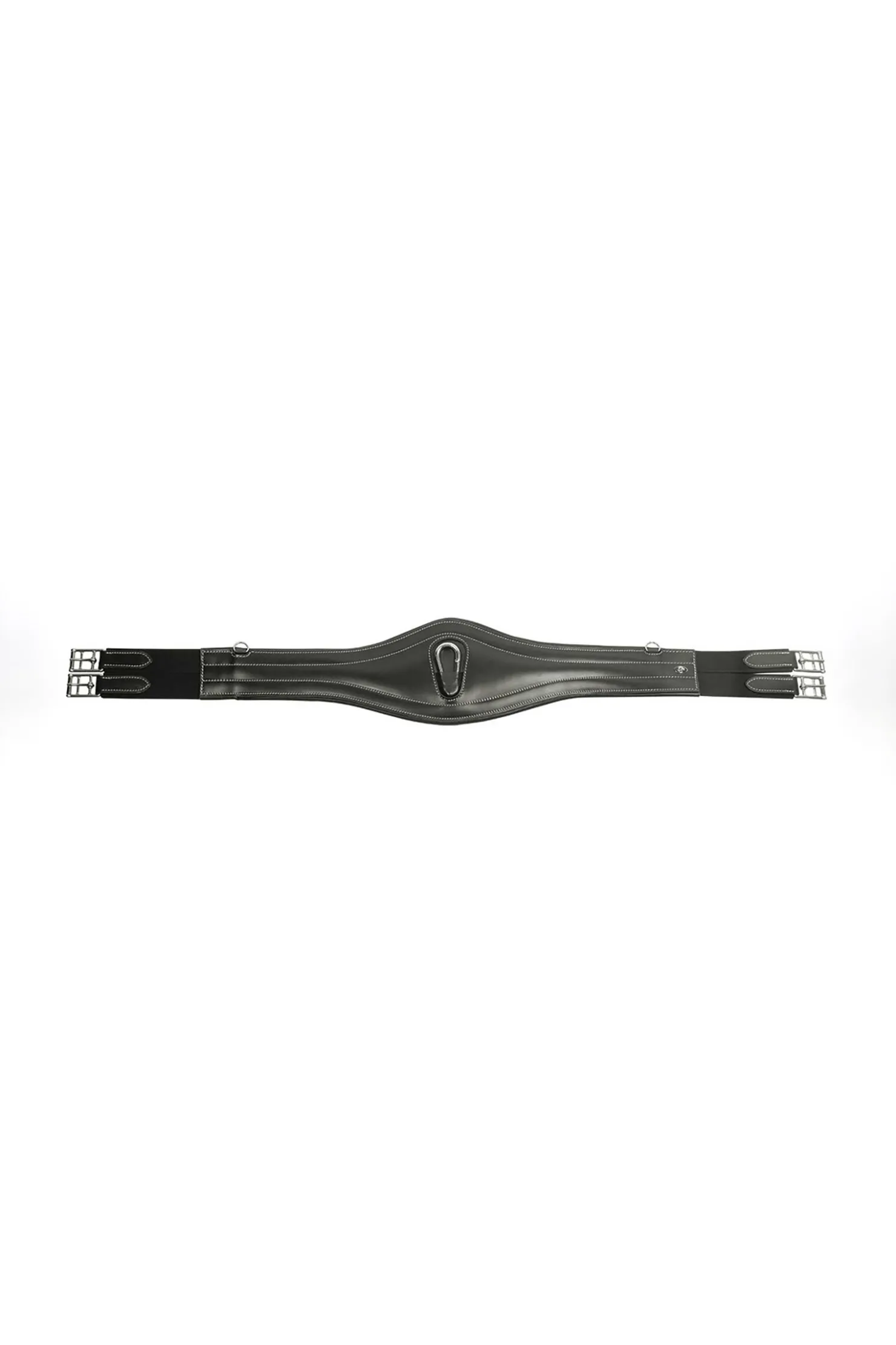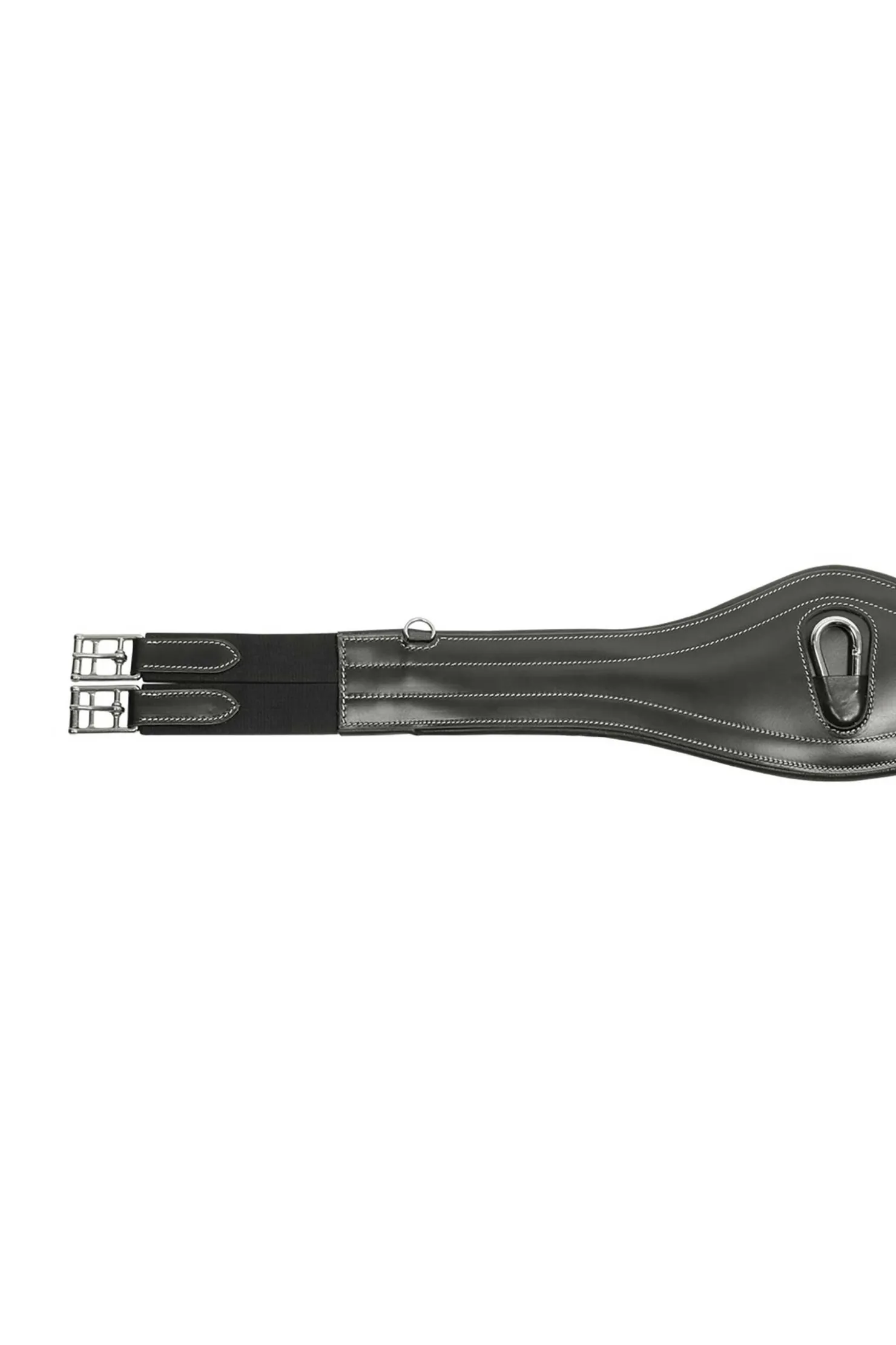 Luksuriøs lærgjord med doble spenner med dekorativ søm. En karabinkrok i midten og D-ringer på siden gjør at denne gjorden er enkel å bruke med hjelpetøyler og fortøy. Rullende spenner i rustfritt stål og trippel strikk på begge sider gir enkle justeringsmuligheter.