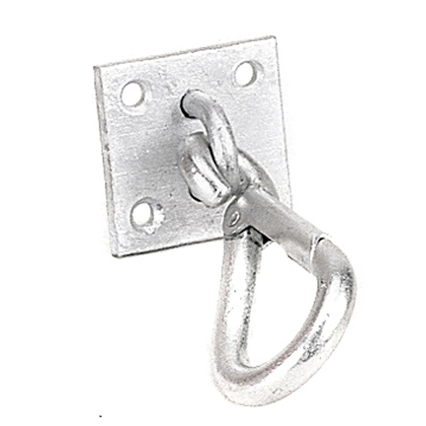 Enkel og praktisk festeanordning for bøtter: metallplate med hurtigkrok. Festes med 4 skruer/bolter i stall- eller hengerveggen.