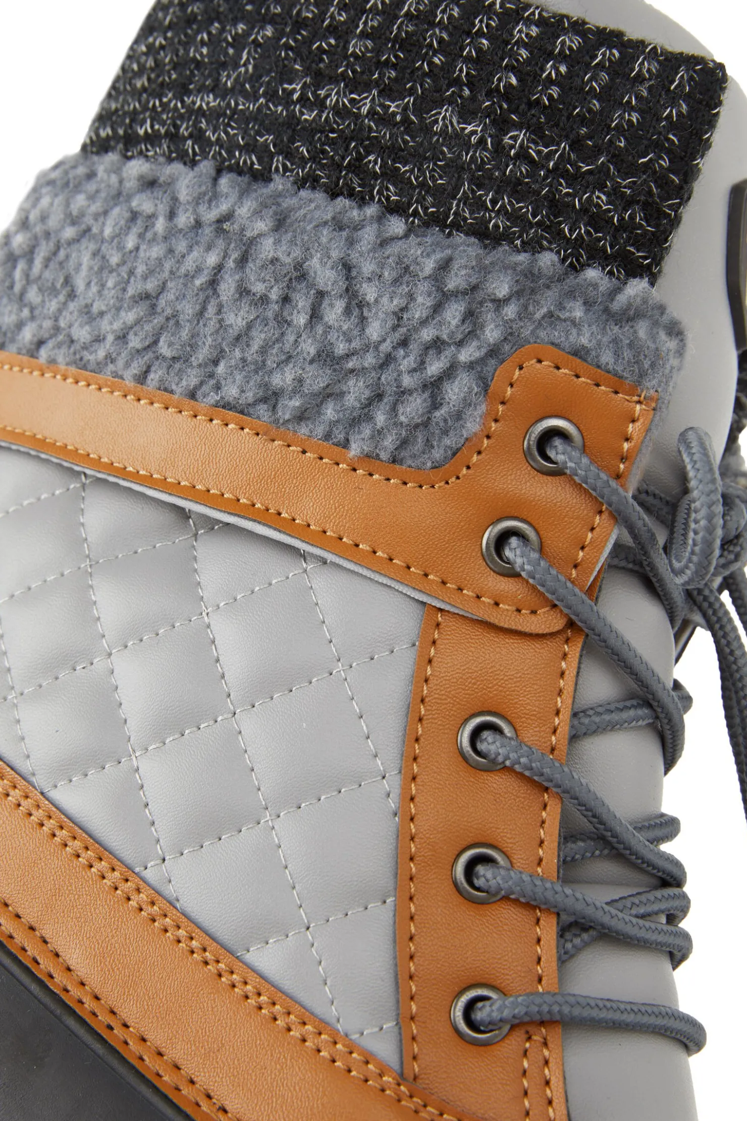 Utside: PU-lær, gummi.Innside: fuskepels.Såle: gummi.