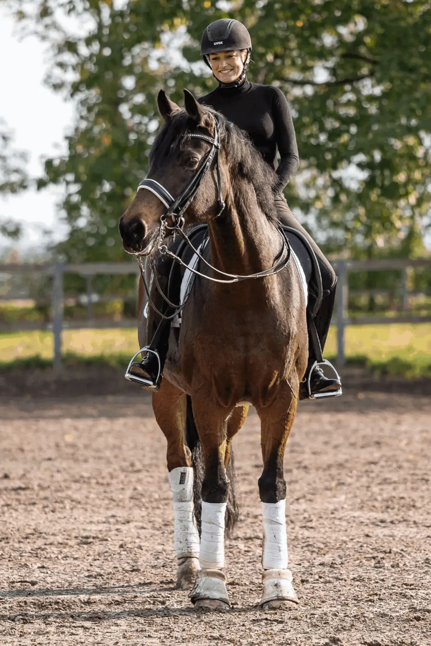Klar for den nyeste standarden for hestevennlige bitt? De innovative novocontact-bittene har en unik form og hviler på tungen med en forstørret kontaktflate. Dette muliggjør en spesielt myk fordeling av trykket i hestens munn med optimal utnyttelse av plassen i hestens munn. På grunn av den moderne novocontact-geometrien er denne weymouth spesielt anbefalt for hester som har en tendens til å løfte tungen. I våre praktiske tester reagerte disse hestene også positivt på bittet. De lange kjefter forsinker signalene litt sammenlignet med korte kjefter, mens et sterkere trykk bygger seg opp i nakken. En sensitiv rytterhånd er essensiell her. Hestens munn har en tendens til å være noe smalere der hvor weymouthen er plassert. Vi anbefaler derfor at du velger en weymouth som er 0,5 til 1 cm mindre enn underlegtrensen. Det er viktig at sidene av weymouthen er tett inntil munnvikene. Hvis det er for mye plass mellom munnvikene og sidebitene, kan weymouthen klemme eller vippe. Kjede skal festes slik at det er mulig å ha en vinkel på omtrent 30 til 45 grader mellom hestens munn og den nedre skjeften.
