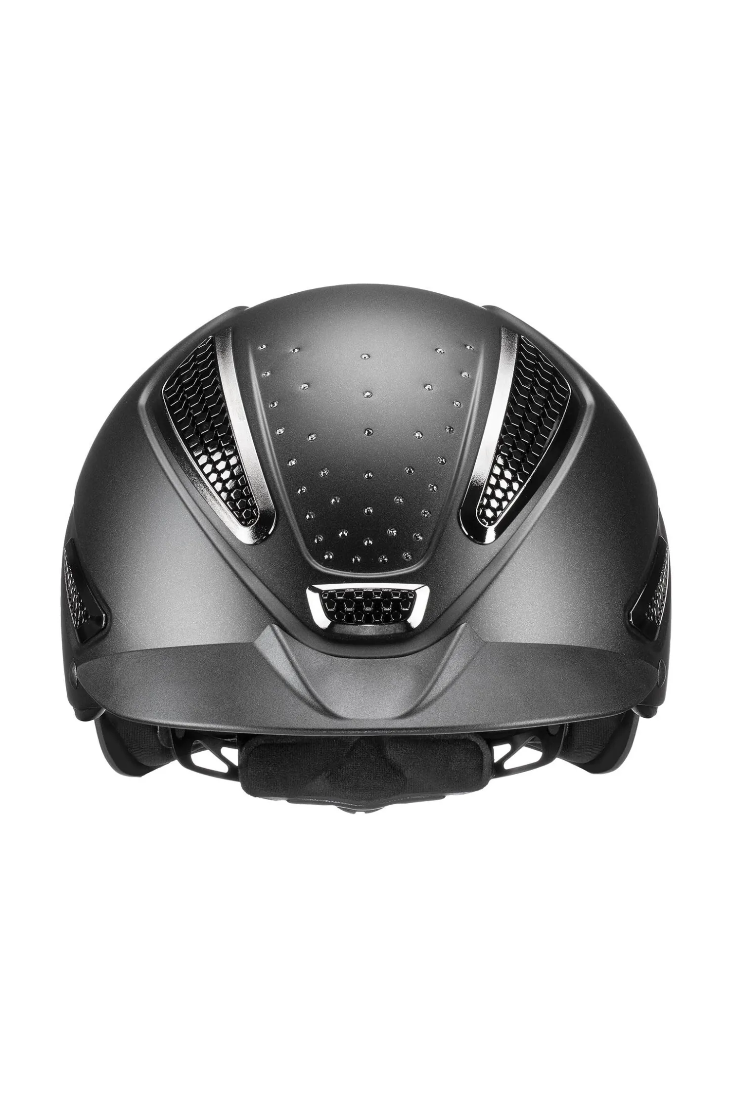 Premium stil møter topp ytelse. Uvex Perfexxion III Grace er et must-have for alle som finner understatement alt for kjedelig når de er i salen. For ditt fantastiske inntog er 38 originale Swarovski®-krystaller blitt satt inn for hånd, og de interagerer med de forkromede ventilasjonsgitter, luksuriøse remdeksler og kunstlærs piping. Dette gjør hjelmen til en eksklusiv blikkfang. For økt sikkerhet har Uvex Perfexxion III Grace en forlenget ytterskall bak på hodet. Det dynamiske ventilasjonssystemet sikrer optimal luftstrøm og garanterer et perfekt klima inne i hjelmen til enhver tid. Komfortfunksjoner fullføres med den praktiske ponytail-utskjæringen og den spesielt myke og pustende super-soft mikrosense-fôringen.
