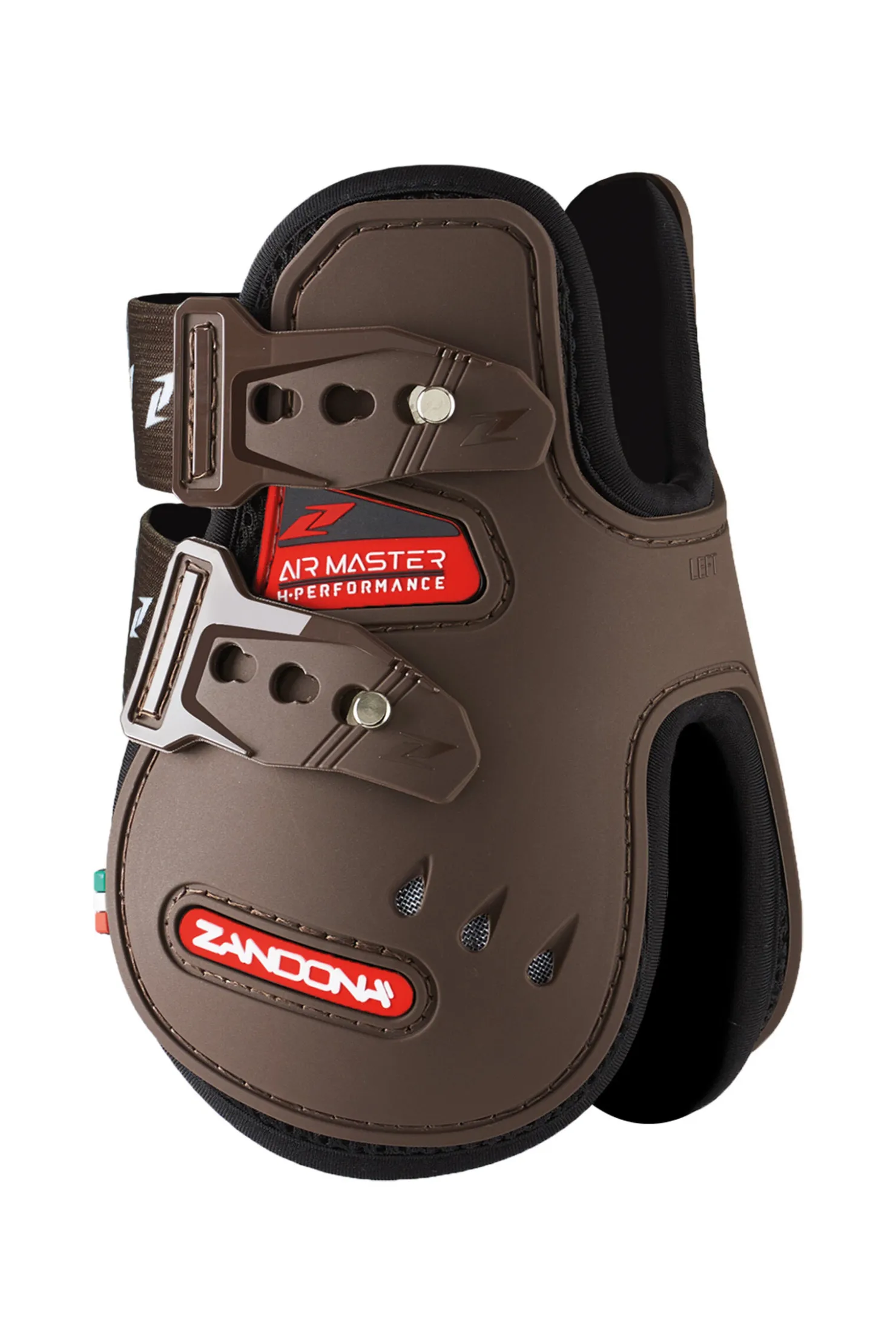 Air Master H-Performance korte bakbeinsbelegg er innovative bakbeinsbelegg utviklet for førsteklasses ytelse og komfort hos spranghesten.Den korte versjonen har en kort form langs senen for god beskyttelse, uten å gå på kompromiss med hestens komfort og velbehag.Det innvendige fôret er laget av et ytre lag i 3D-mesh, et innvendig lag i perforert neopren og den velprøvde Gel-Tech-polstringen på områdene som er utsatt for slag. Belegget gir førsteklasses nivå av beskyttelse og optimal komfort.Strikkene til Performance kommer med en garantert ytelse på et høyt nivå, og festene har en ny form som gjør dem enda mer komfortable, raske å ta på, og trygge å bruke.Karakteristiske trekk ved kolleksjonen til Air Master er det oppdaterte designet og at de er 100% laget i Italia. De er anerkjent for sin suverene kvalitet og eksepsjonelle letthet.
