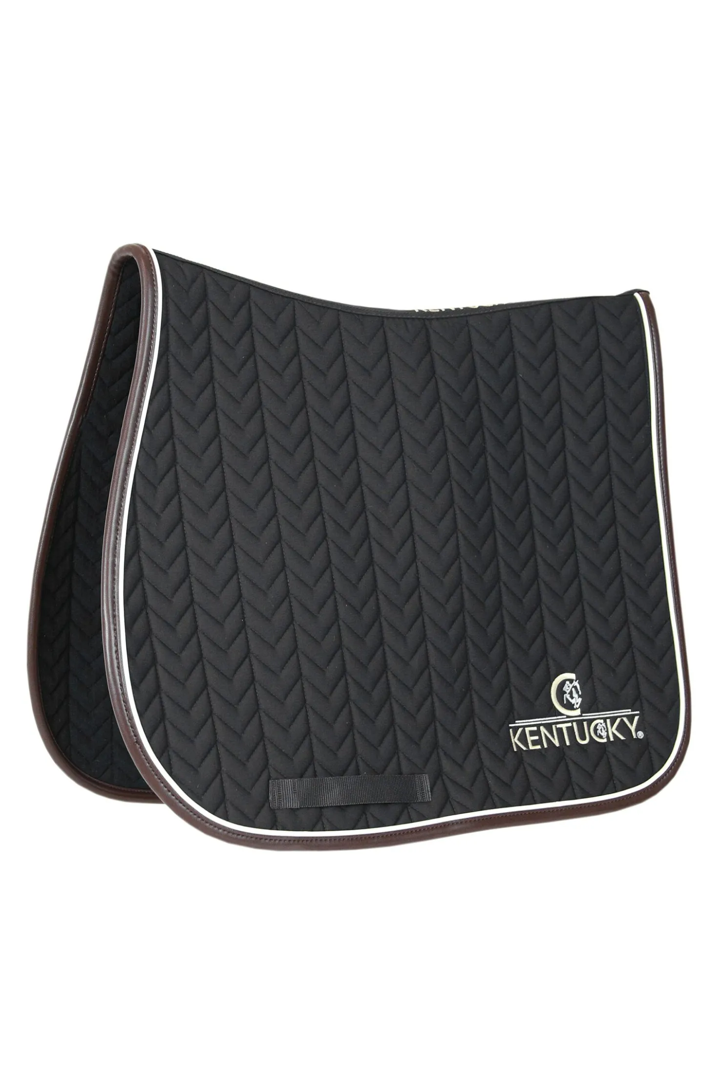 Vår fiskebeins-sprangsjabrak med lærkant er formet for sprang og gir utmerket demping mellom hestens rygg og salen, samtidig som det beskytter mot friksjon. Sjabraken har en unik fiskebeinsvattering. Sjabraken har ingen irriterende fester til salen, kun en nylonstropp til gjorden. Sjabraken kommer med en veldig klassisk lærkant, og den stilige Kentucky-logoen.